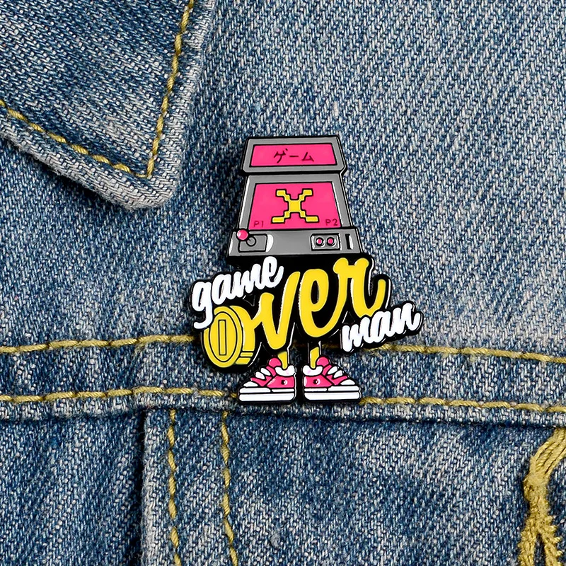 Розовая эмалированная брошь в виде игрового автомата для аркадных игр, джинсов, рубашек, сумок, ретро-игр, ювелирные изделия, подарок для друзей, мальчиков, мужчин
