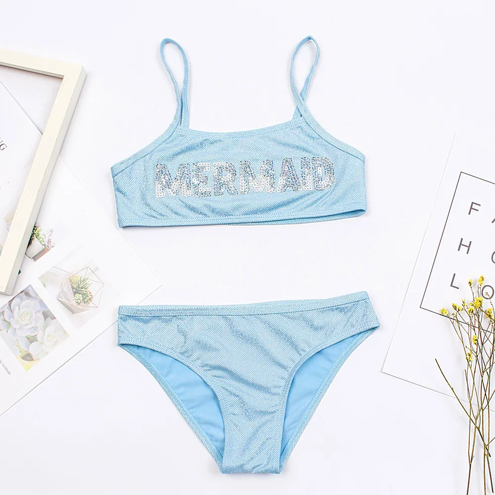 Детский однотонный купальник для подростков, из 2 предметов, купаль...