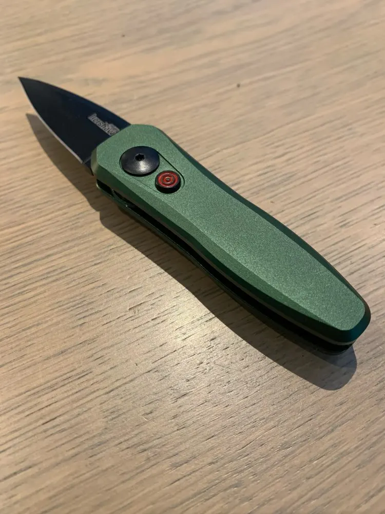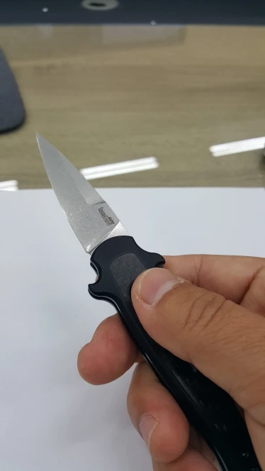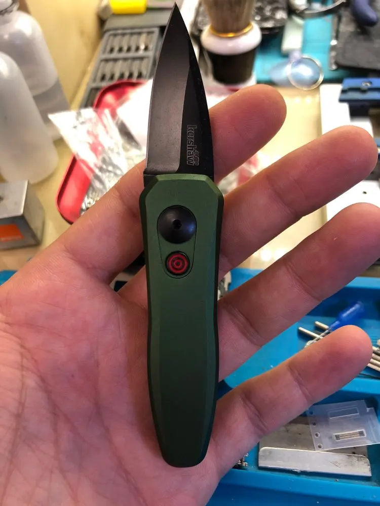 KS7500 EDC/Pocket knife arrived in Kershaw Box with directions. Switchblade is well built with an excellent blade and a tight fit. Springs is strong which enables a fast strong presentation of the blade. The button is firm and the knife shouldn't open on accident. The pocket clip has a bend which enables a nice grip for your index finger. It's on the small side but that was the designer's intent and makes for a handy everyday carry to your everyday hardware. If I would change everything it would be to change the handle material from aluminum to titanium.