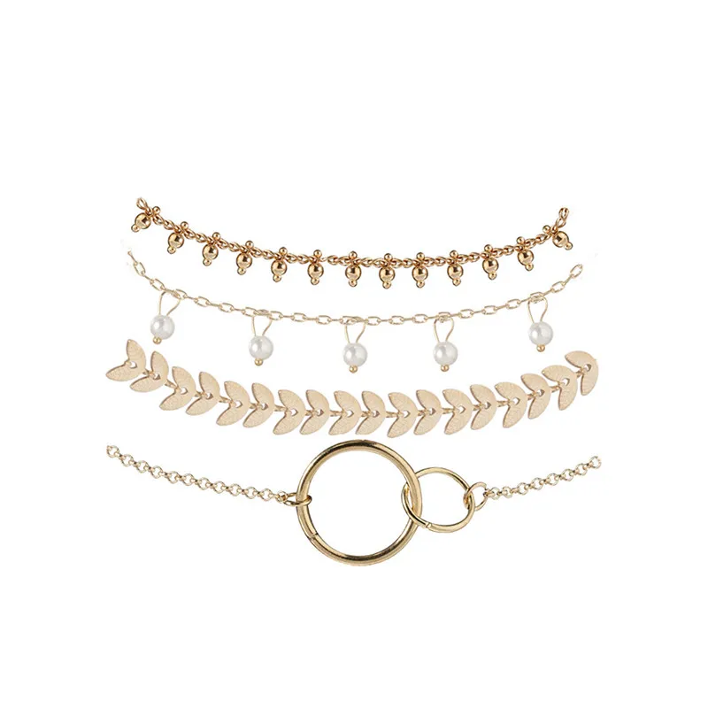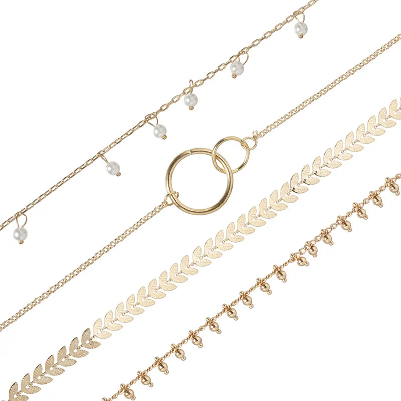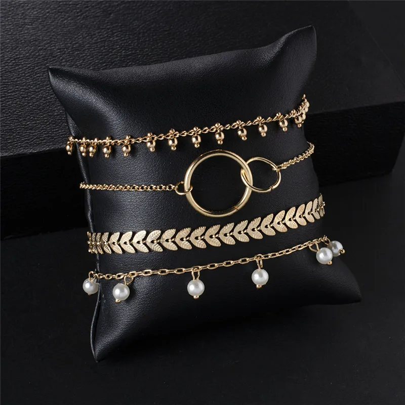 Набор из 4 браслетов и цепочек для женщин, простой геометрический к...