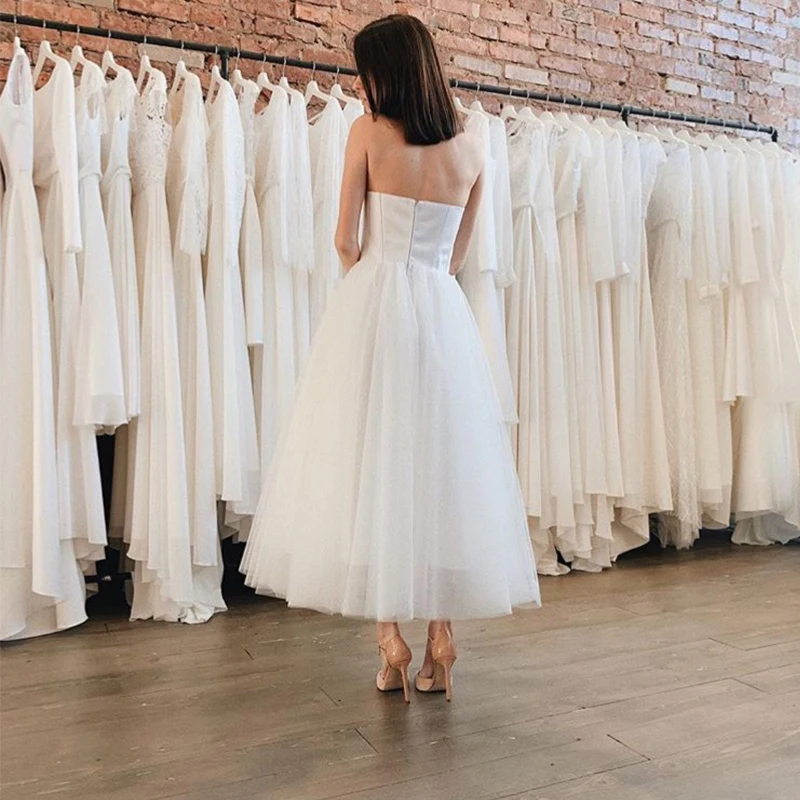 Женское Короткое свадебное платье, ТРАПЕЦИЕВИДНОЕ ПЛАТЬЕ ИЗ ТЮЛЯ С ...