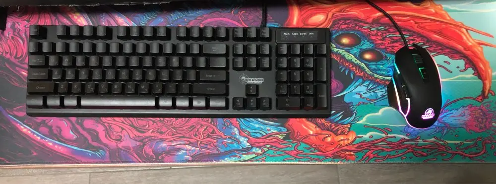 Претензий к магазину не имею, товар в порядке. Но, если надумаете покупать, имейте в виду, что рисунок не такой яркий как на картинке, подсветка не сильно спасает положение. (Хотелось чего-то более яркого и кислостного) Как по мне, проще было взять в DNS побольше размером чёрно-красный "Блади" и не заморачиваться)