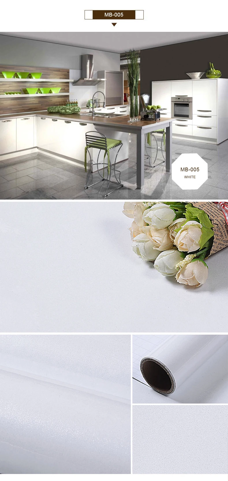 Самоклеящаяся пленка для кухонной столешницы, белая мебель, восстановленная пленка, водостойкая маслостойкая Наклейка на стену, домашний декор