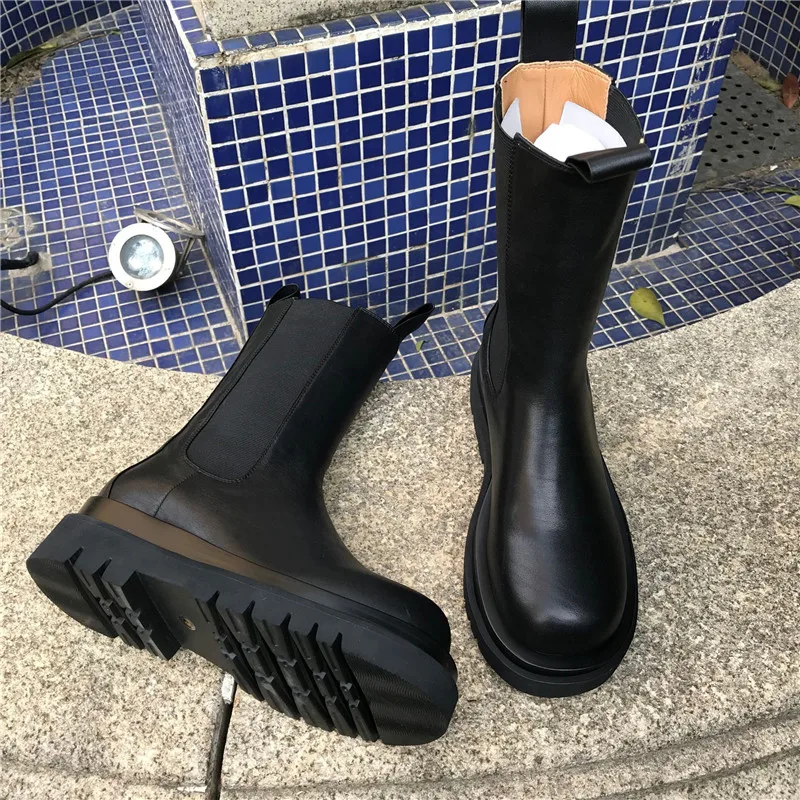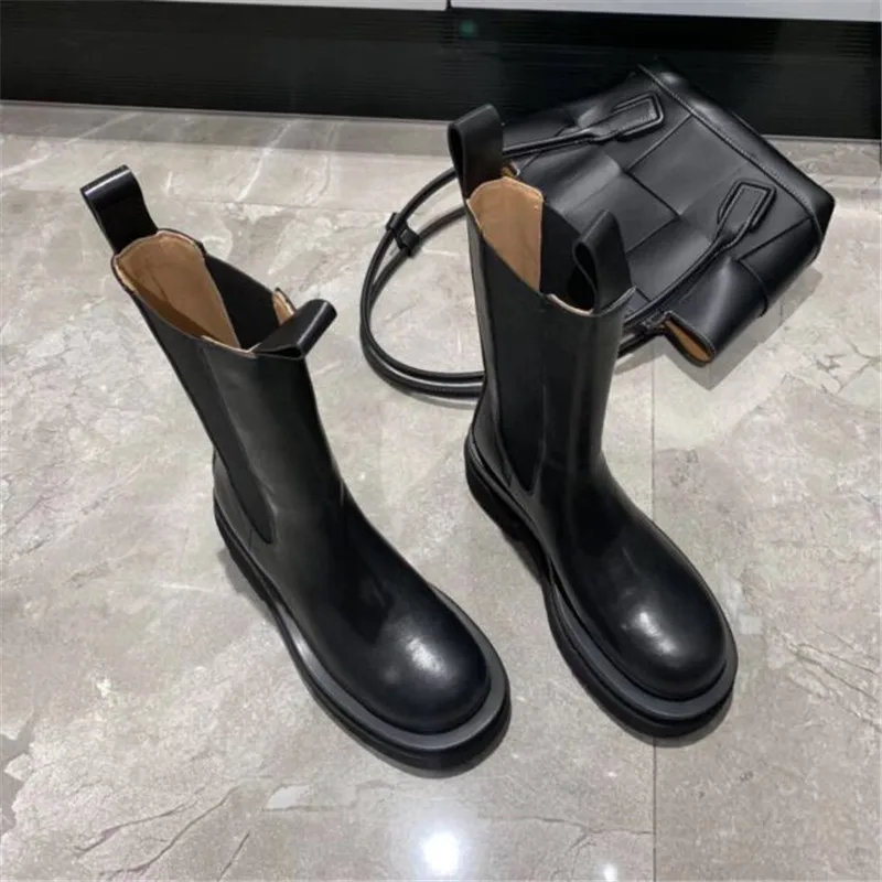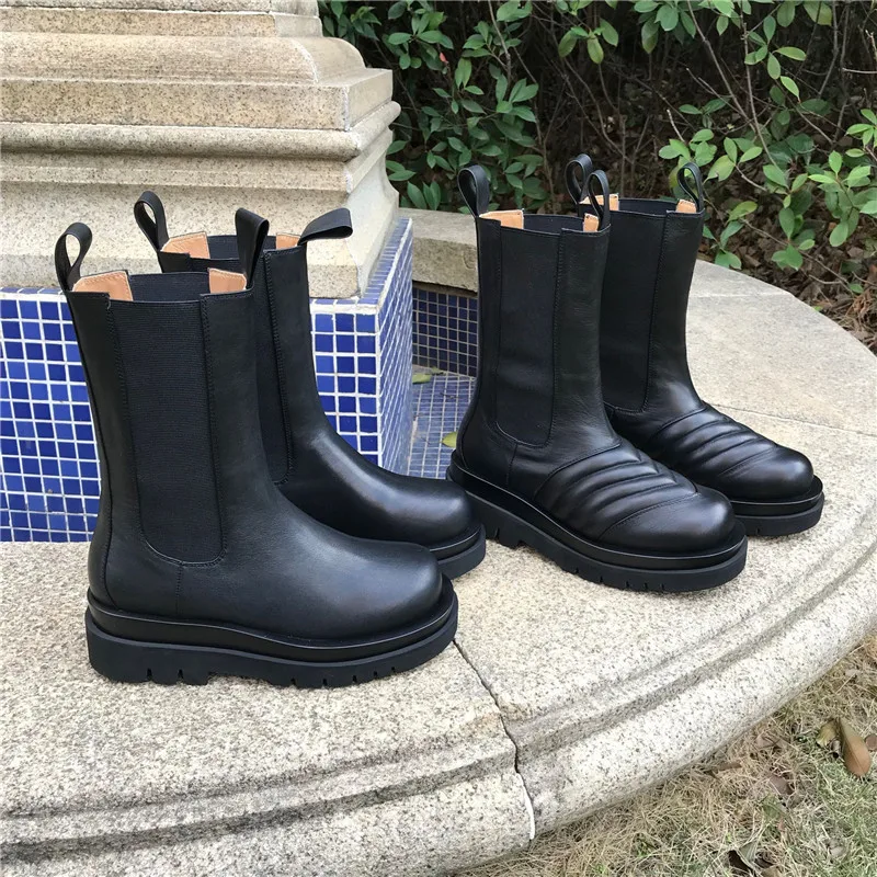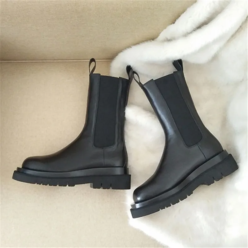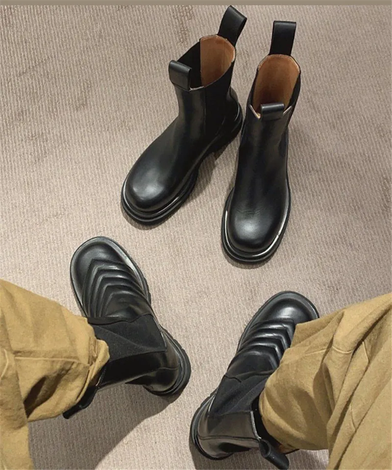 Женские ботинки челси из натуральной кожи, Черные ботильоны на плоской подошве, без шнуровки, 2022