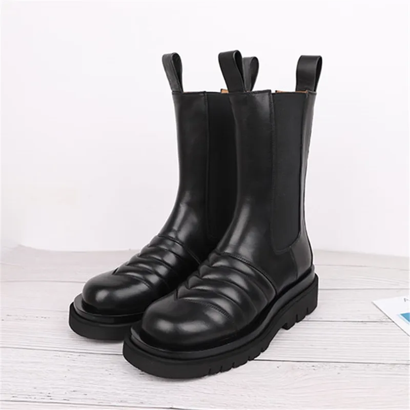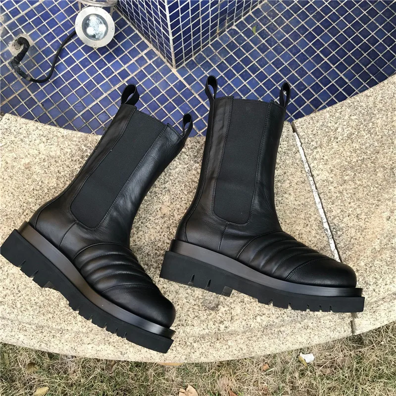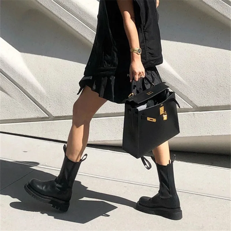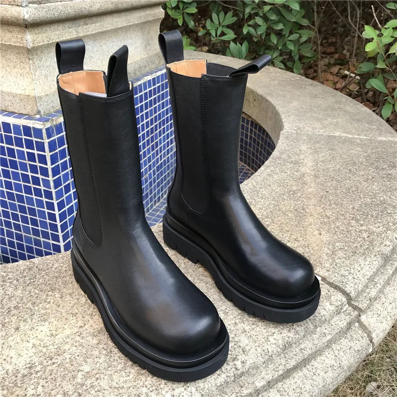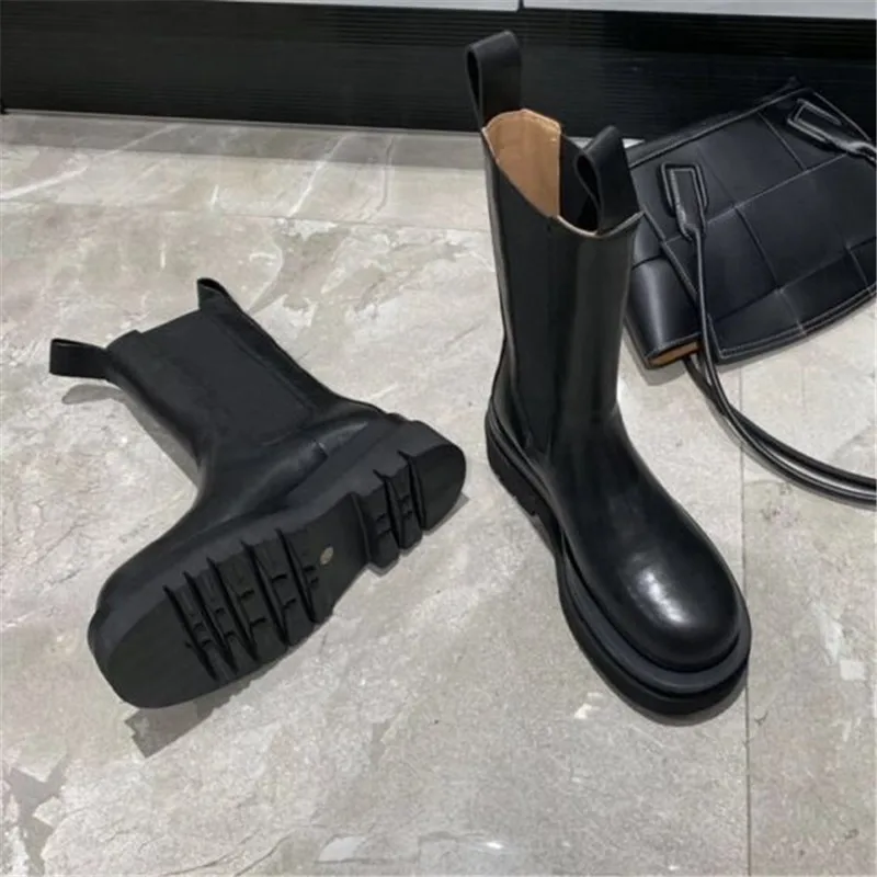 Женские ботинки челси из натуральной кожи, Черные ботильоны на плоской подошве, без шнуровки, 2022