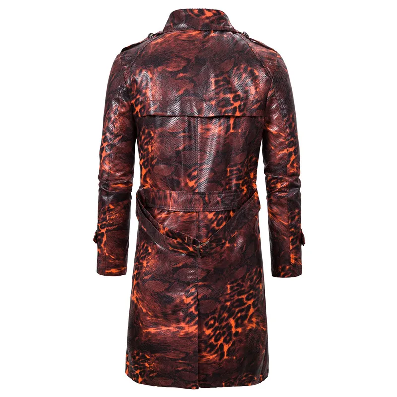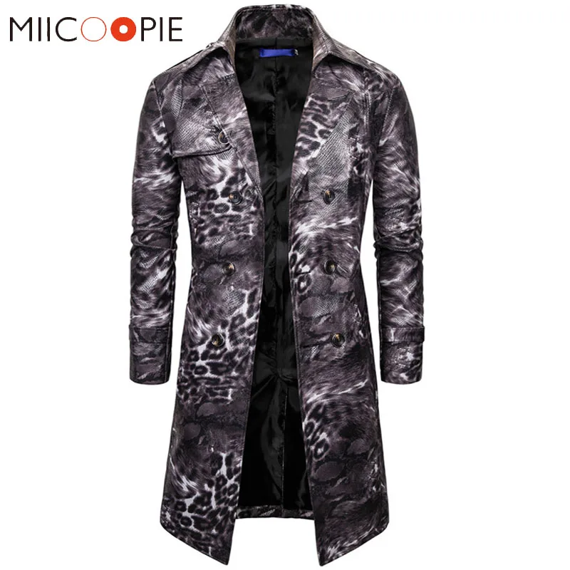 Тренч в стиле стимпанк, длинное пальто, мужское повседневное двубортное приталенное пальто с леопардовым принтом, мужские зимние куртки и пальто, верхняя одежда