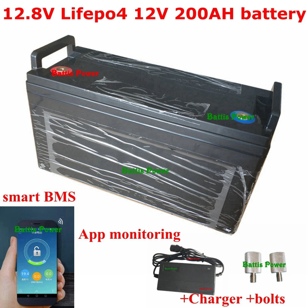 Перезаряжаемый анти-Водный 12,8 V Lifepo4 12V 200AH литиевый аккумулятор BMS 200A с bluetooth для солнечной системы инвертор + зарядное устройство 10A