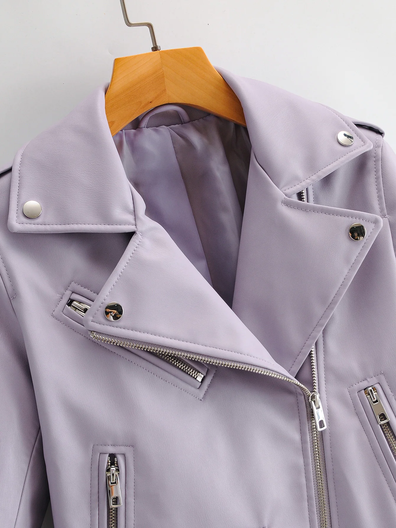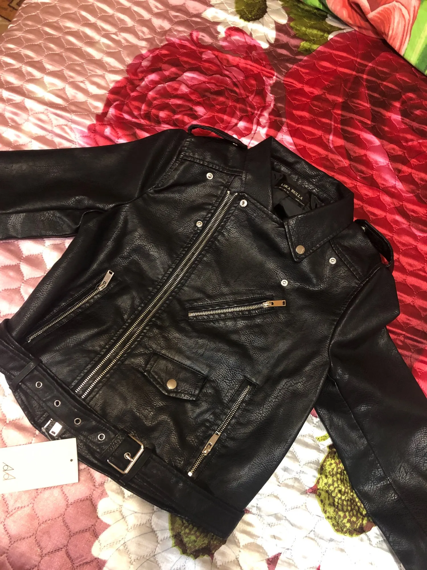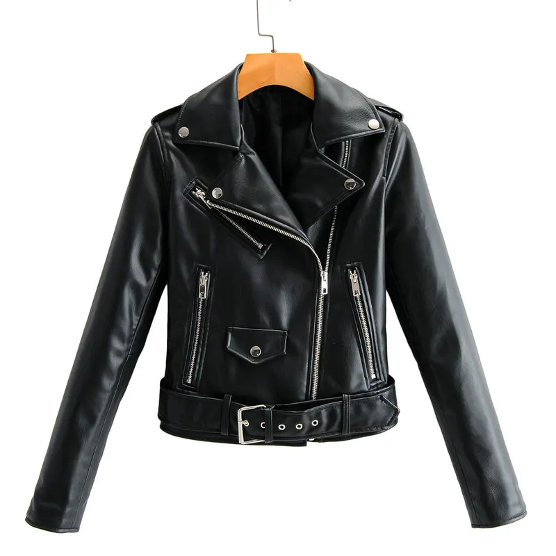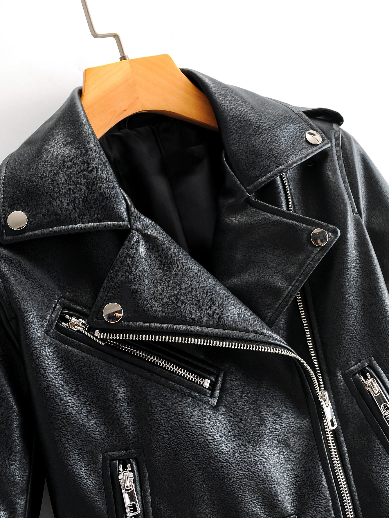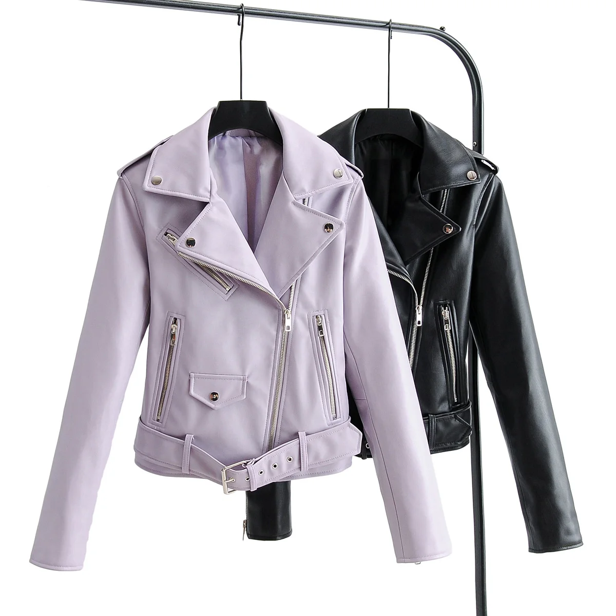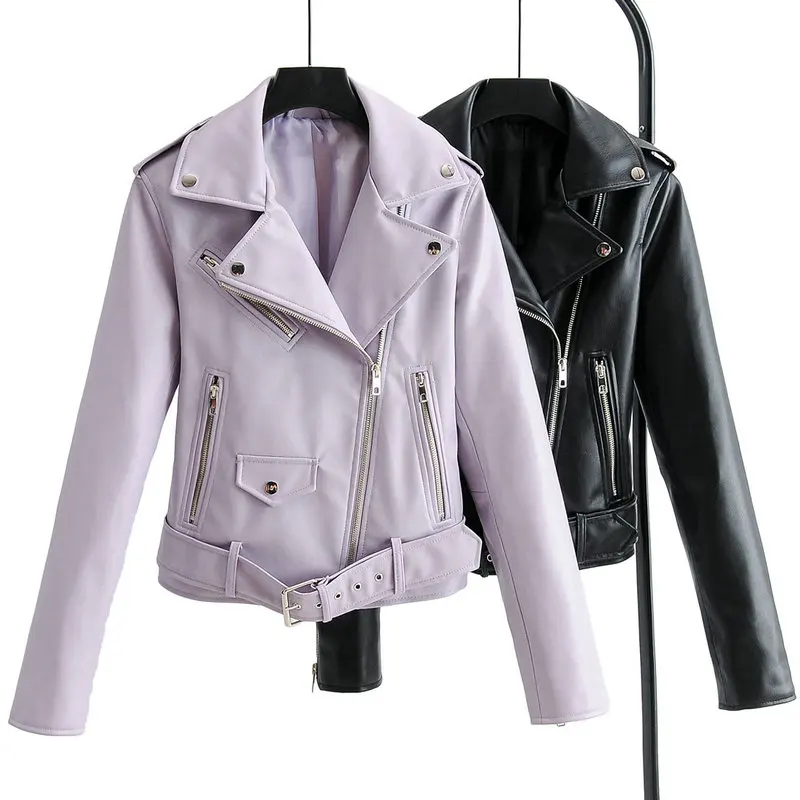 Куртка женская из искусственной кожи на молнии, Осень-зима 2021