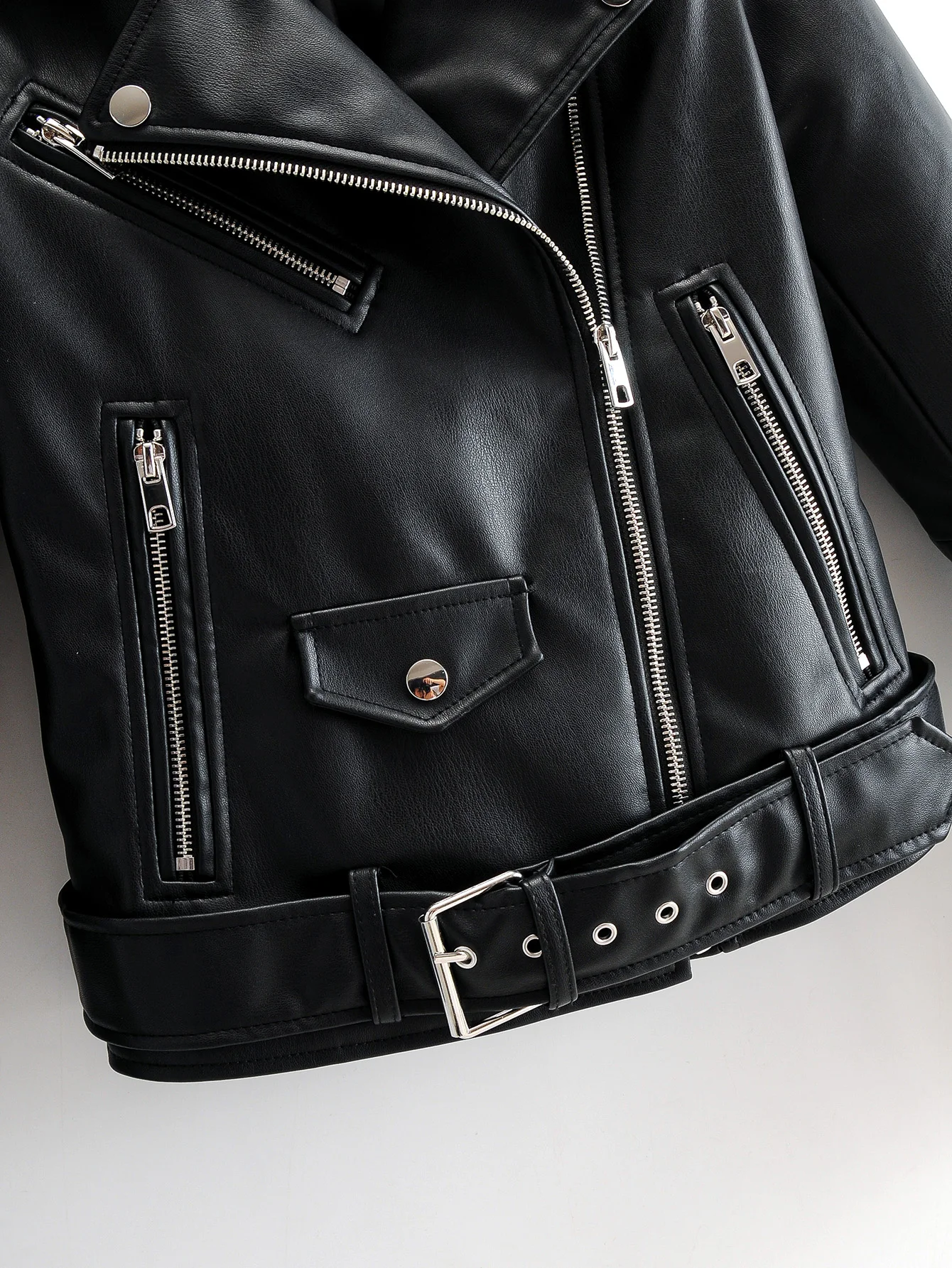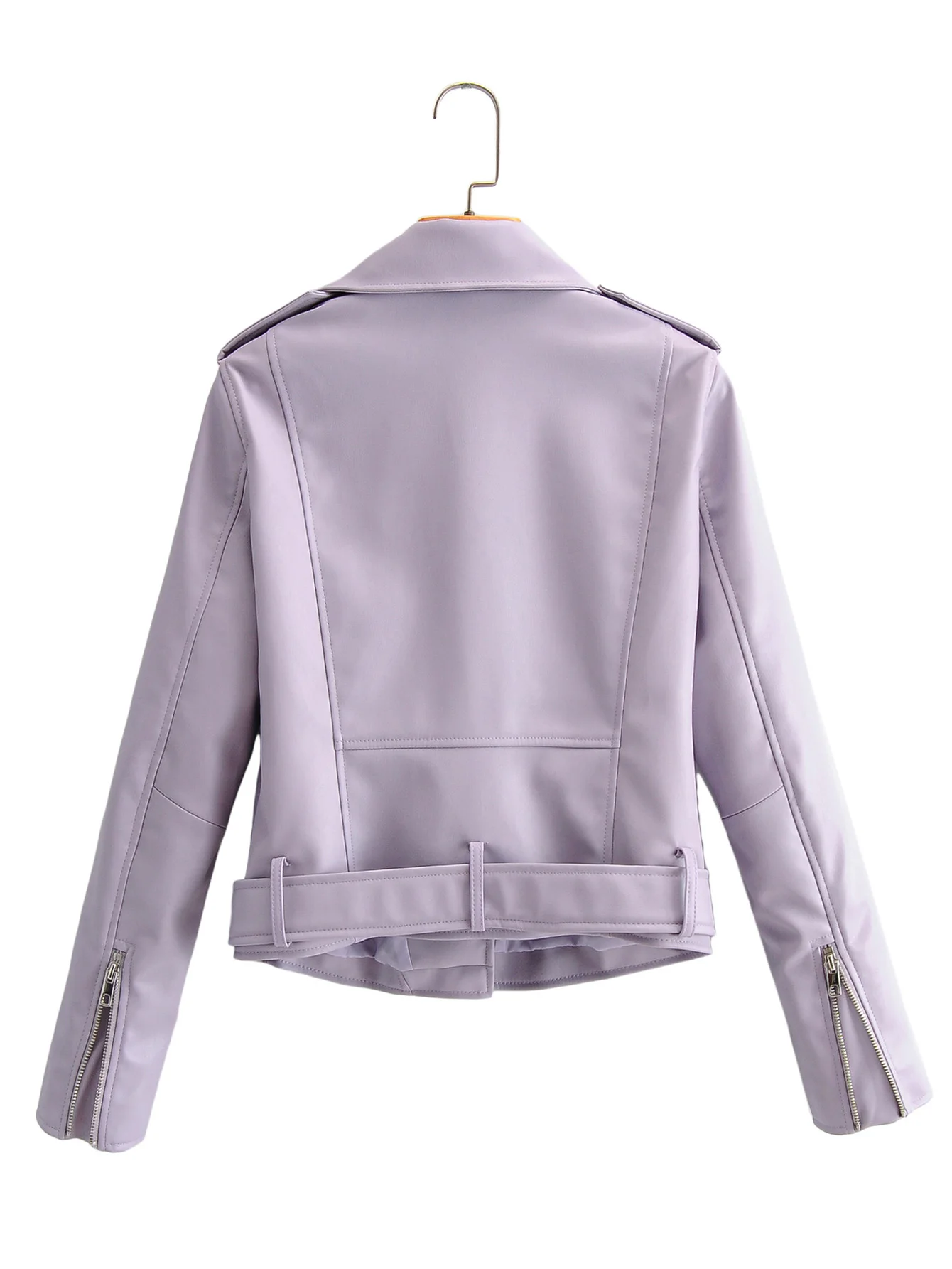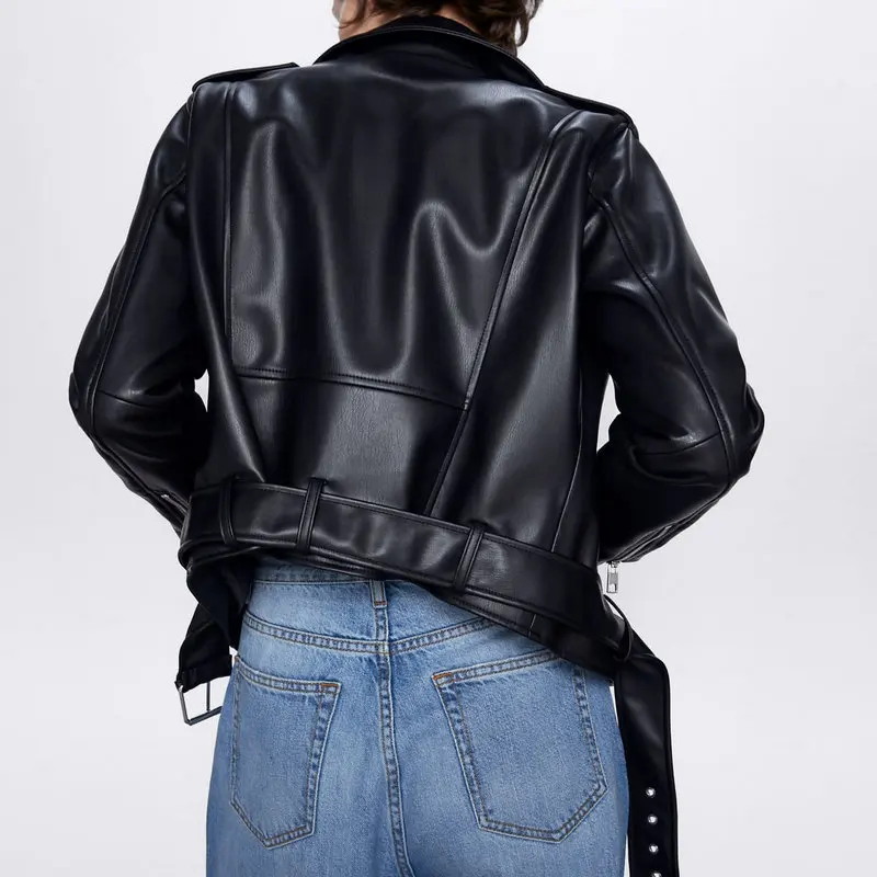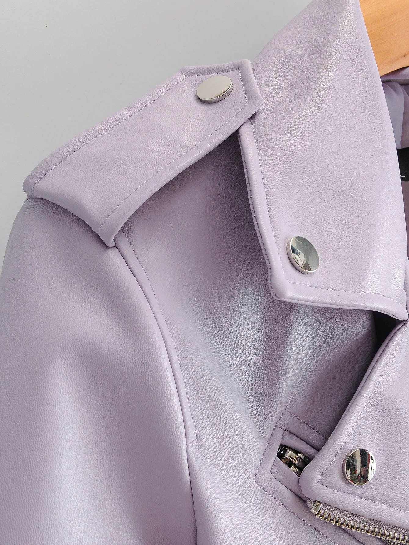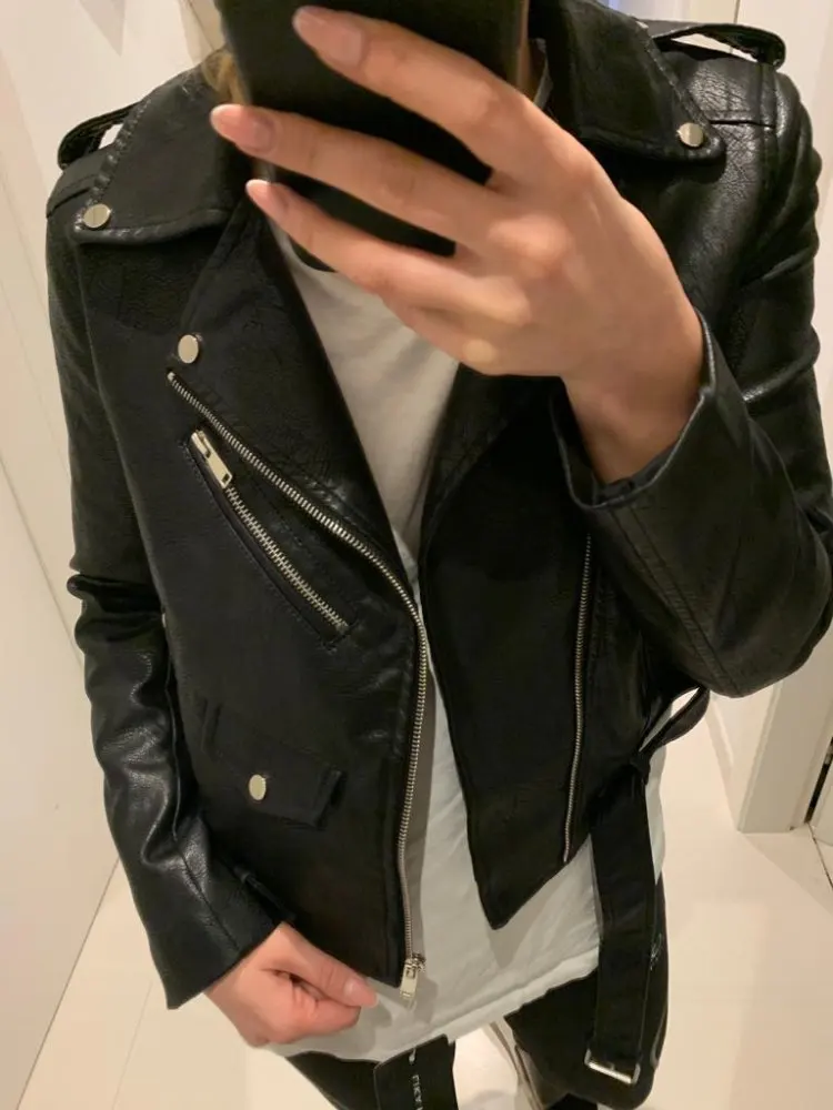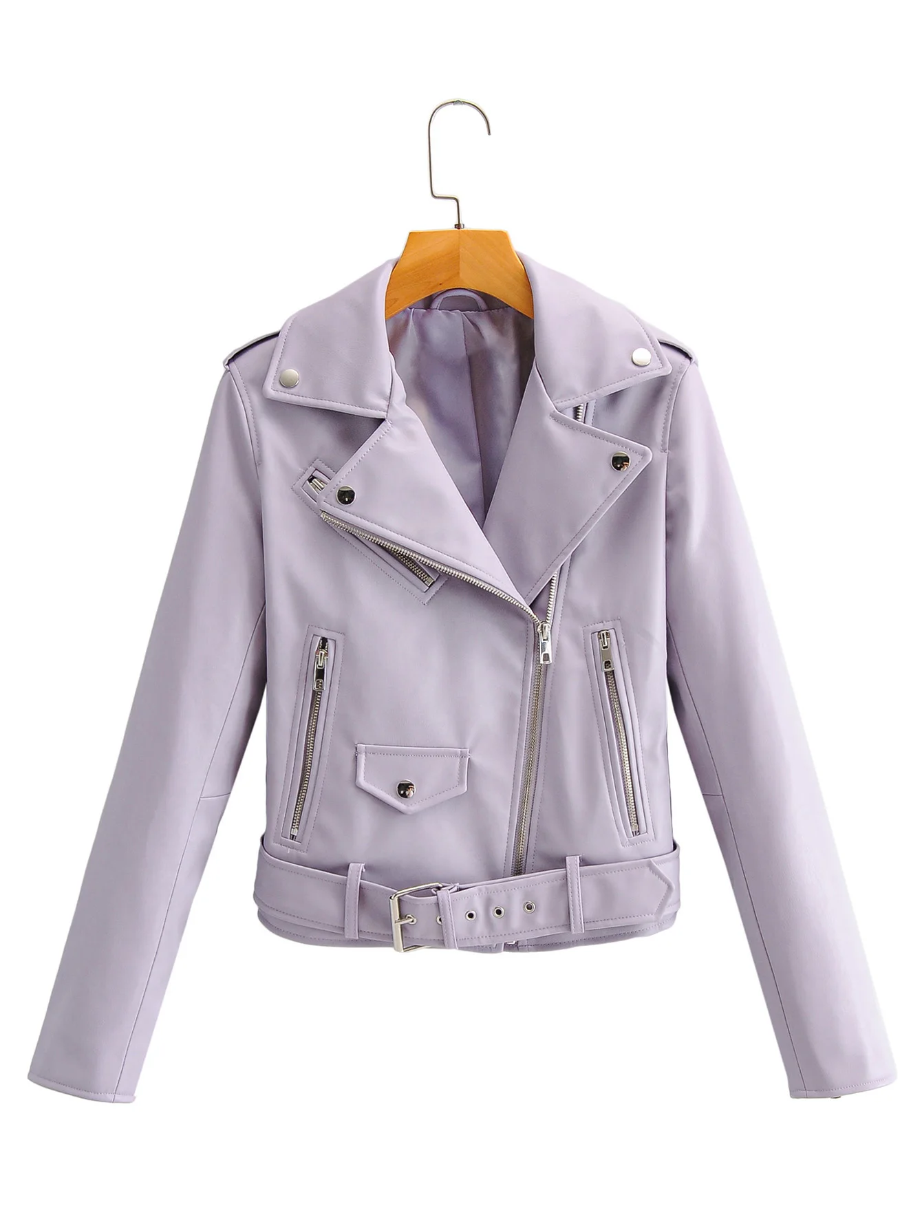 Куртка женская из искусственной кожи на молнии, Осень-зима 2021