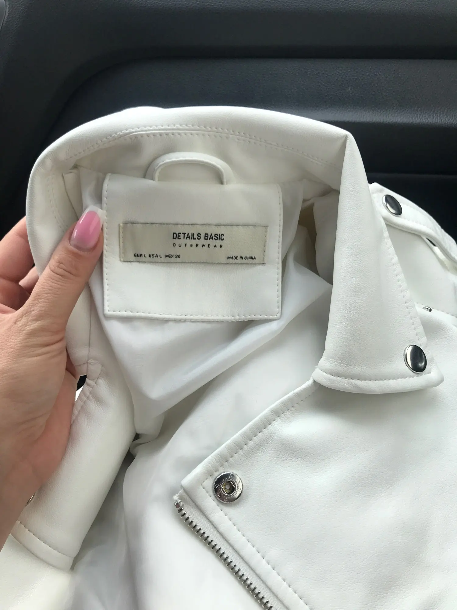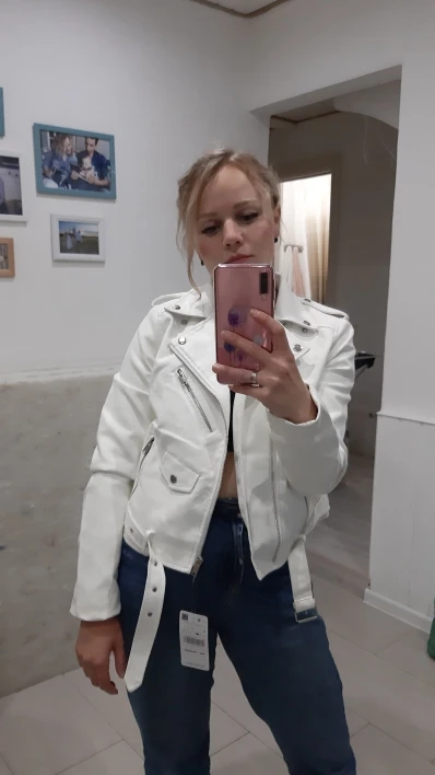 Куртка класс, рекомендую. Один из немногих продавцов, который продаёт кожанку в чисто белом цвете. Качество хорошее, доставили быстро. Взяла на размер больше, села отлично. Пришла с запахом, но это классика для кожаных изделий с али.
