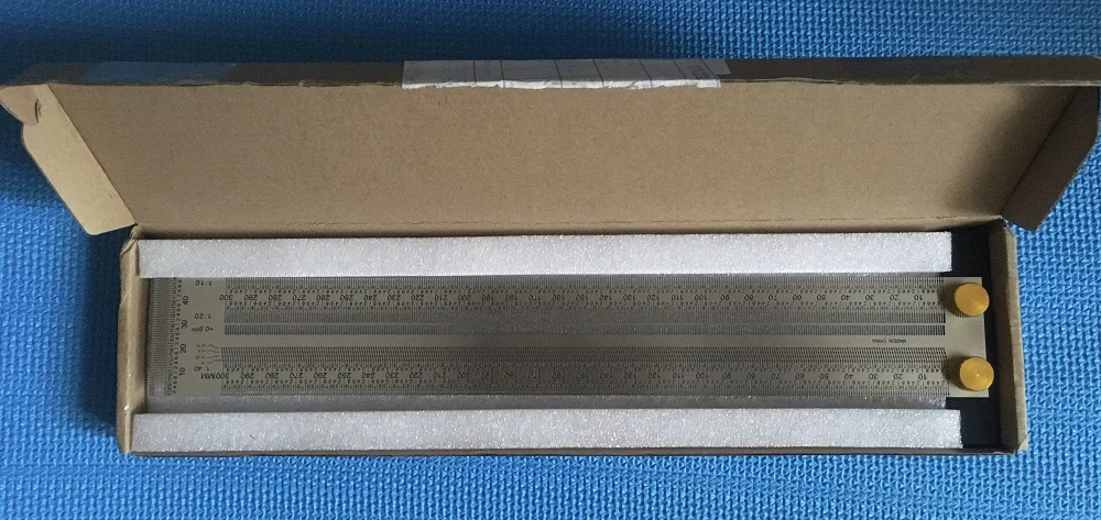 Товар доставляется в течение 4 недель. Поставляется в картонной коробке и включает в себя пенопласт для обеспечения безопасности упаковки. Продукт поставляется в идеальном состоянии, без вмятин, без изогнутых краев, гладкий, как новый. Материал-нержавеющая сталь, очень тонкий и легкий, но очень точный при использовании для чтения или маркировки. Забор потребовал немного калибровки, чтобы получить его идеально квадратным 90 градусов, но его очень легко настроить. Я очень доволен. Пять звезд.