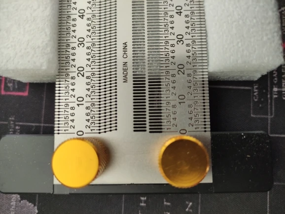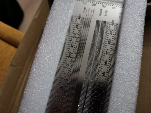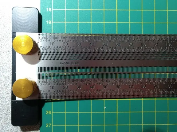 Линейка очень хорошая, качество отличное. На линейке есть отверстия с шагом 0,25 0,5 и 0,75 мм, что облегчает разметку. Единственные недостатки, которые нашел это толщина самой линейки, она легко гнется, поэтому надо аккуратно обращаться и небольшая неточность стартовой планки при прилегании к нулю.