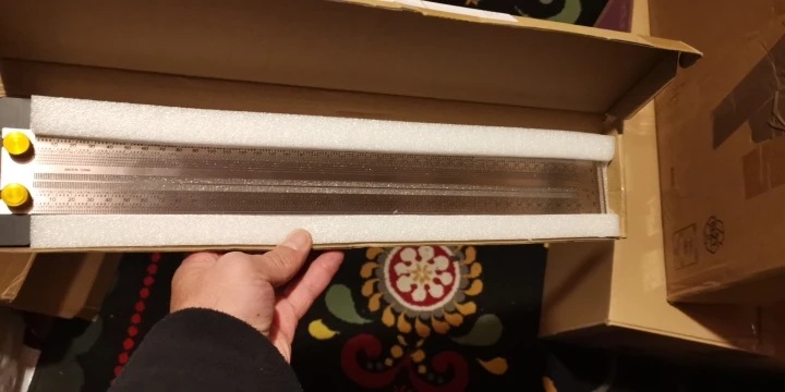 К сожалению, во время транспортировки был сильный изгиб, но я получил его выпрямленный, поставив линейку под давлением в течение 24 часов. Изгиб все еще виден, но нет ничего тревожного. Ранее я заказал у них линейку без повреждений при транспортировке. Очень тонкий материал, который, вероятно, мне очень понравился