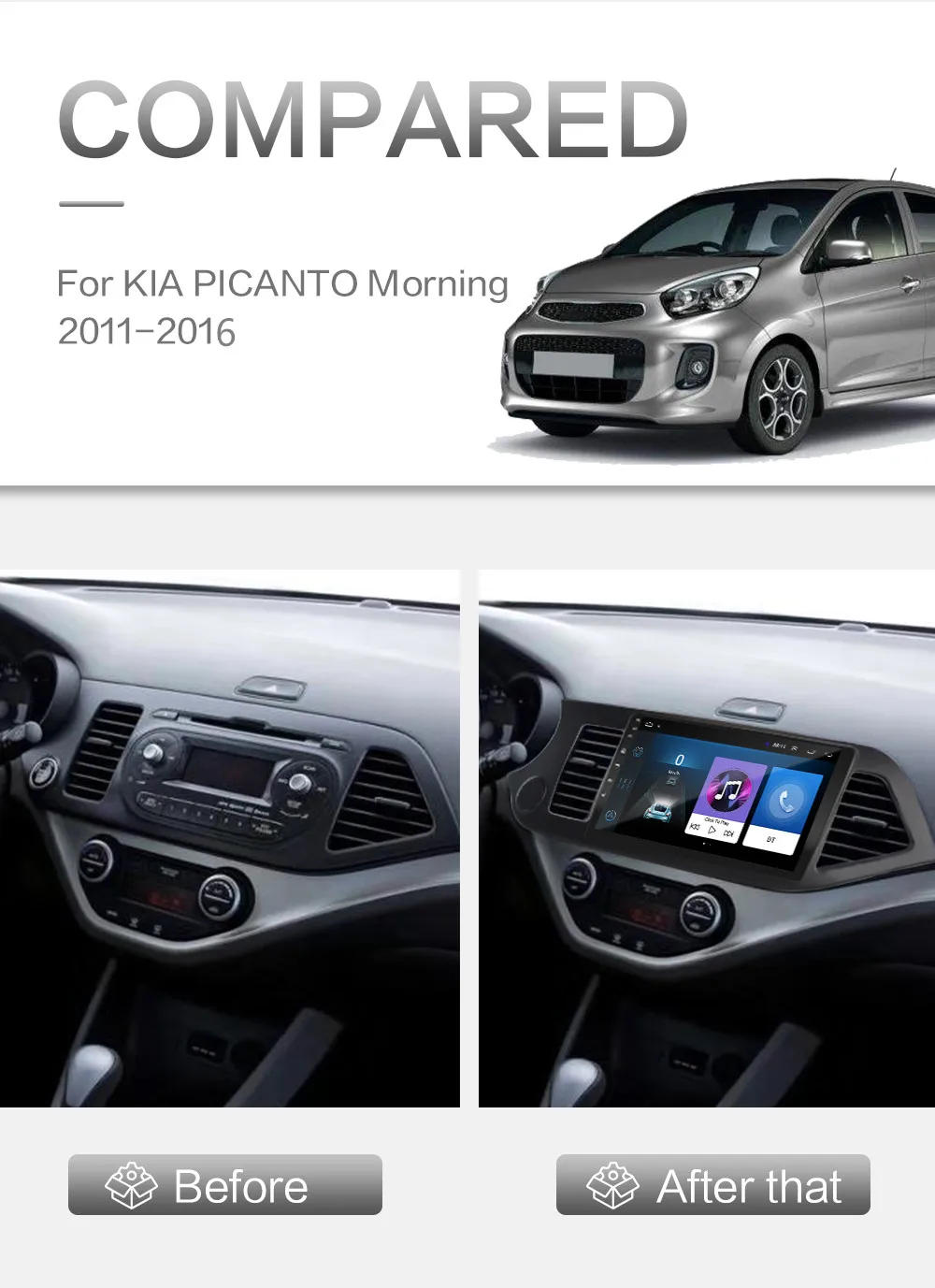 Для KIA PICANTO Morning 2011 2012 2013 2014 2015 2016 20171. Операционная система Android может установить приложение Google Play store Skype Facebook youTube Twitter и т. Д.2, 4-х ядерный конфигурация включает в себя (Оперативная память + Встроенная память): 1 Гб + 16 ГБ/2 ГБ + 16 ГБ/2G + 32G [дополнительно]3, 8-ядерный конфигурация включает в себя (Оперативная память + Встроенная память): 7216-1 г + 32 г/7216-2 г + 32 г/7216-4 г + 64 г/7216-6 г + 128 г/7216-8 г + 128 г/4G-SIM-5760-2G + 32G/4G-SIM-5760-4G + 64G/4G-SIM-5760-6G + 128G/4G-SIM-5760-8G + 128G [опционально]4, 4-ядерный содержит: версия: Android 9,0Разрешение: HD TM; 1024*600; Не поддерживает функцию AM и RDS;5, 8-ядерный содержит: версия: Android 10;Разрешение: HD IPS,7216-WIFI версия: поддержка s DSP, FM, RDS ,16EQ, HIFI, поддержка функции внешней Carplay, сплит-экран, двойная запись спереди и сзади и 360 панорамных функций камеры; не поддерживает видеовыход;4G-SIM-5760-WIFI версия: 8-ядерный, Поддержка s DSP, FM, RDS, Hi-Fi, Разделение экран, Поддержка к встроенный Carplay функция, спереди и сзади двойная запись и 360 панорамная камера функций; не поддерживает видеовыход;6. Поддержка: радиостанция, Bluetooth Вызов, Bluetooth музыка, управление рулевым колесом, встроенный WiFi, MP3, видео музыка (MPG, AVI), навигация, видеовыход, зеркальная связь, USB 4G LTE WIFI ключ и другие функции; Поддержка выбора логотипа автомобиля; Sfactory пароль: 8888