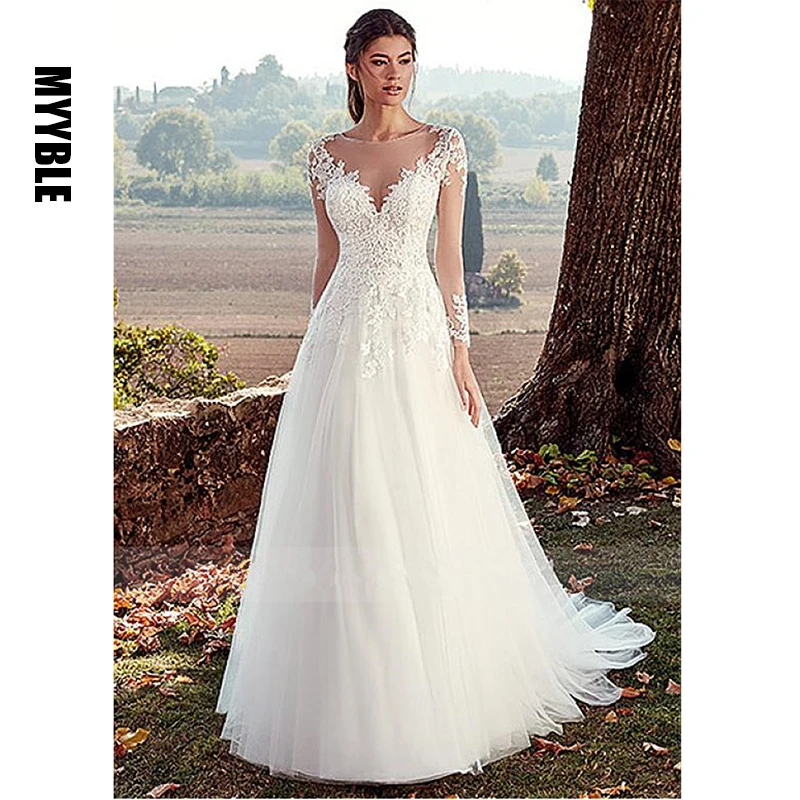 Роскошное кружевное свадебное платье MYYBLE 2021 с длинным рукавом ...