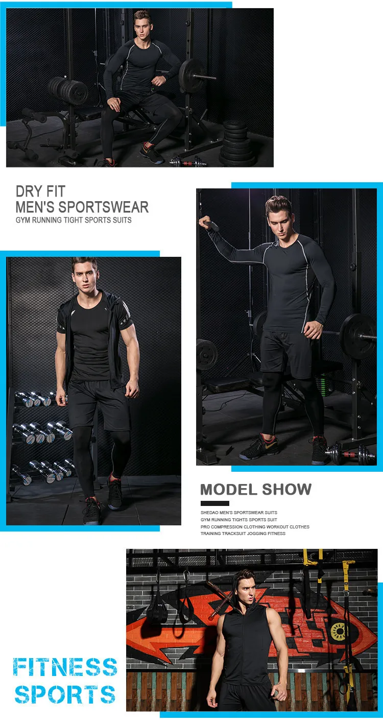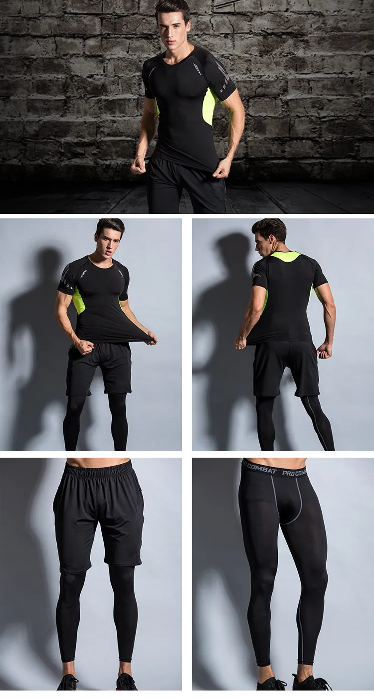 Набор для бега в тренажерном зале для мужчин, спортивный костюм, спортивная одежда для бега на открытом воздухе, мужская спортивная одежда для фитнеса, тренировочный костюм для сухой посадки, ММА