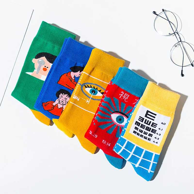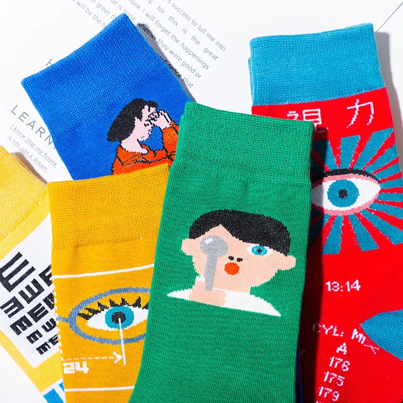 Новые анимационные женские носки из хлопка, забота о глазах, серия, модные милые забавные женские носки с визуальной диаграммой