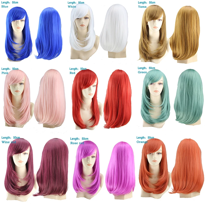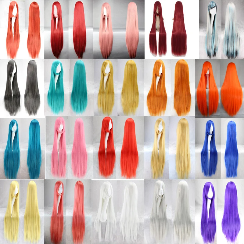 Similler Аниме Длинные прямые синтетические парики для косплея женские термостойкие волосы Черный Синий Розовый Зеленый Желтый Красный 100 см
