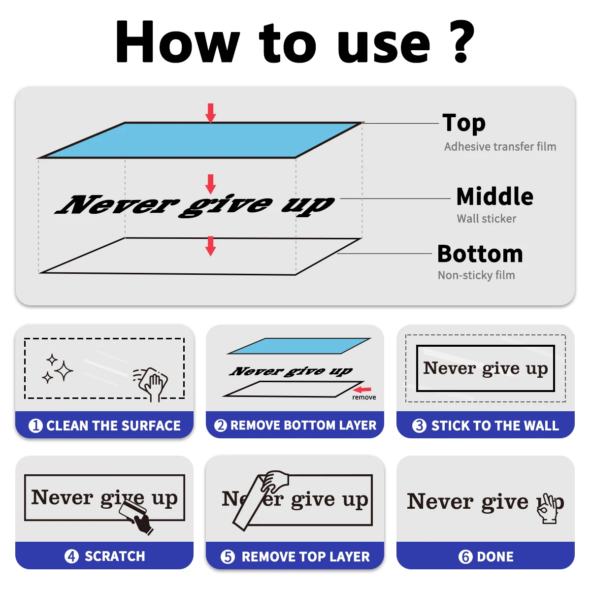 4. Место: Подходит для любой плоской поверхности, такой как мебель очки полы стены зеркала автомобилей Baots велосипеды дерево пластик металл.