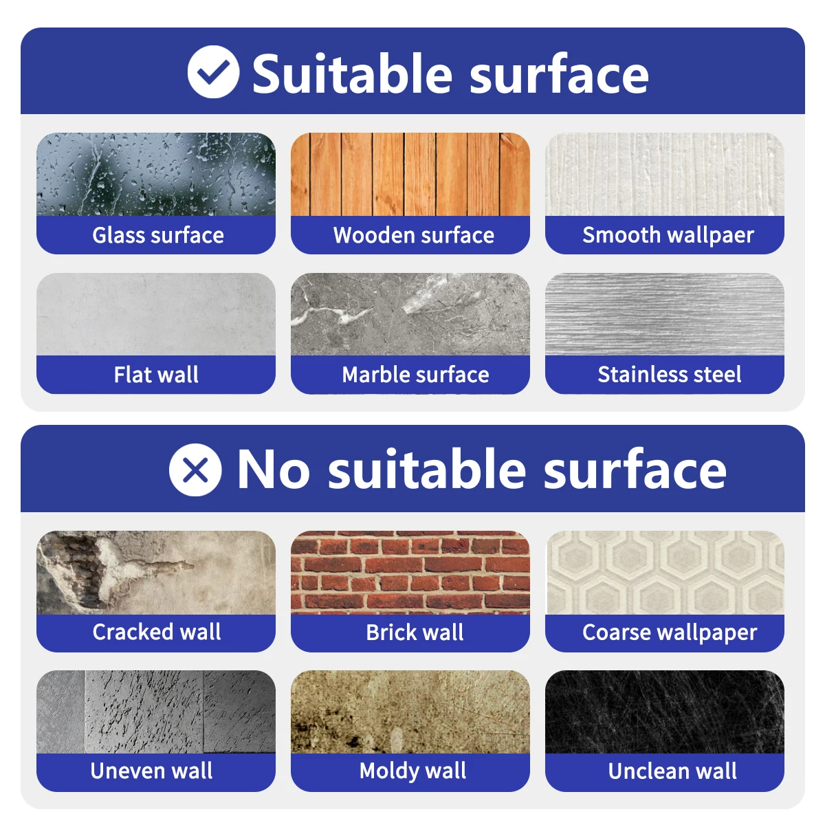 1. Убедитесь, что прикрепляемая поверхность является гладкой поверхностью, а также что есть выпуклости, вогнуты и морщины. Не прилипают.
