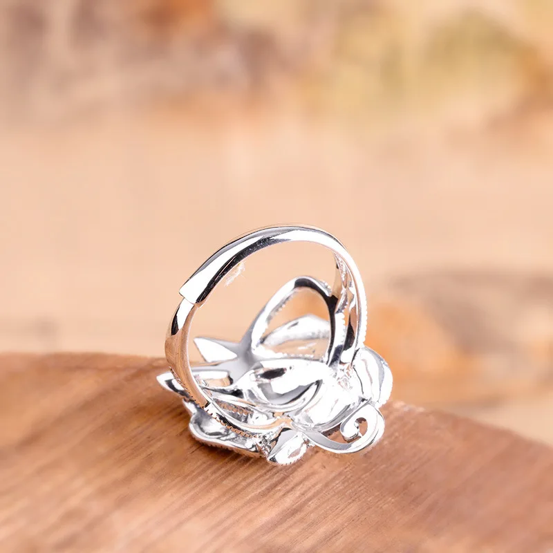 Кольцо женское из серебра 925 пробы, с цветочным принтом