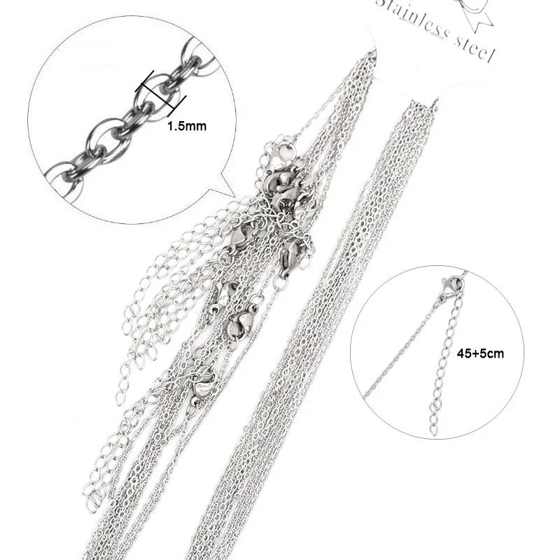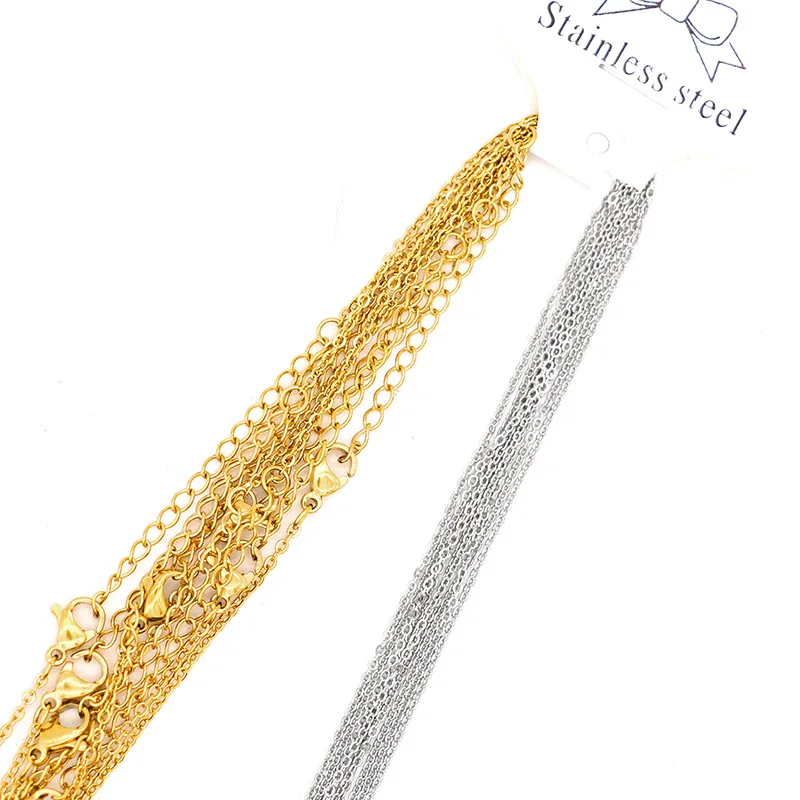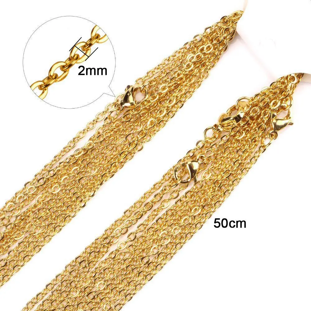1 упаковка, цепочка из нержавеющей стали 316L 1,2, 1,5, 2 мм, Золотая сталь, тон 45, 50 см, длина для женщин и мужчин, регулируемая цепочка