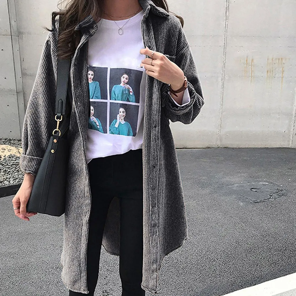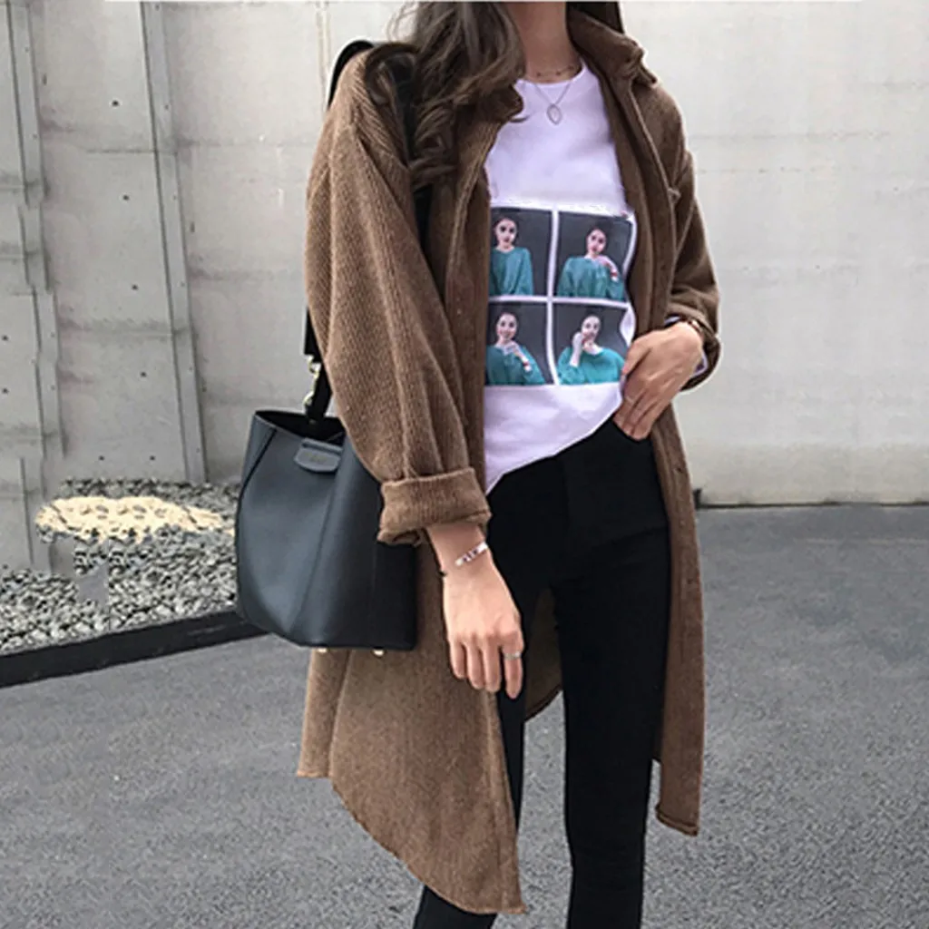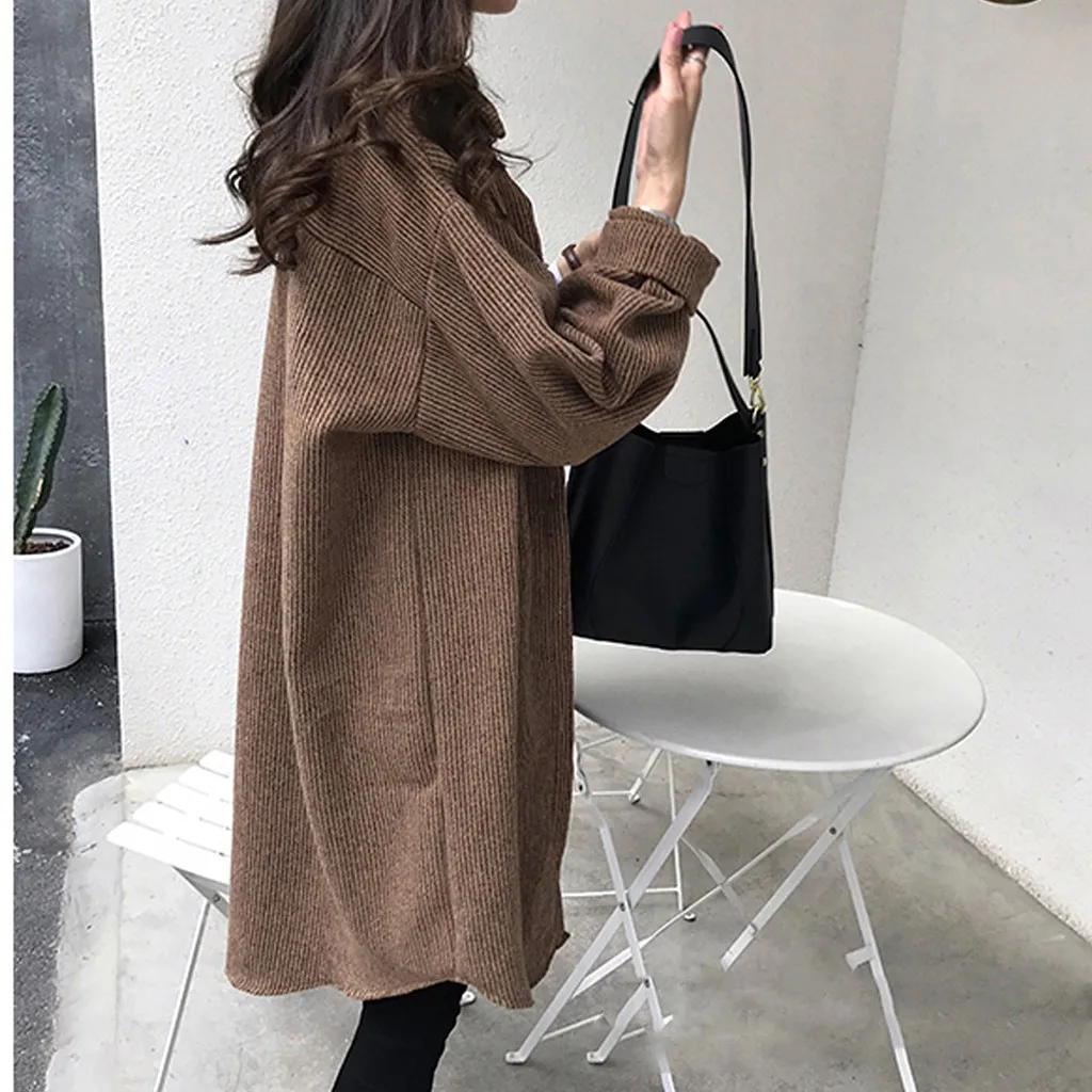 Длинная Вельветовая куртка в стиле Харадзюку, Женское пальто, большие милые Куртки, однотонная одежда, размера плюс #4, зима-осень