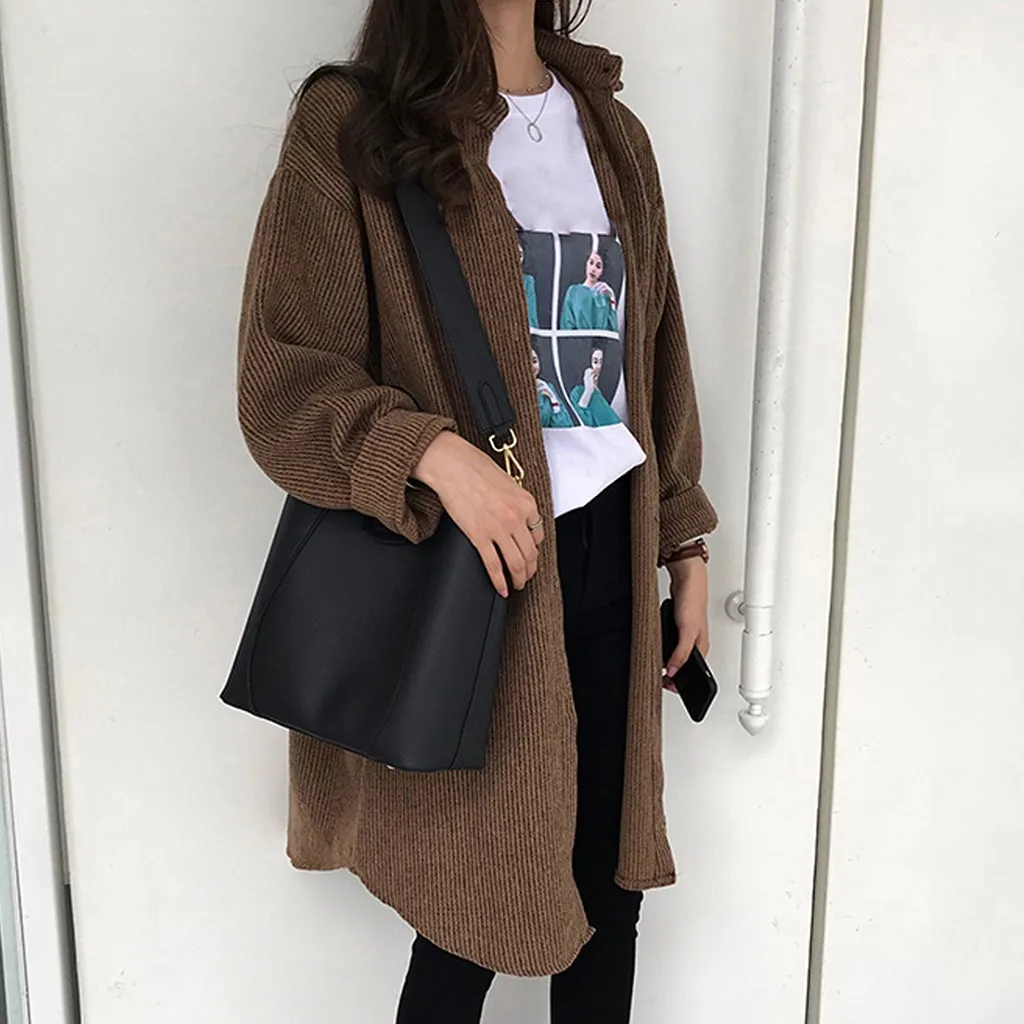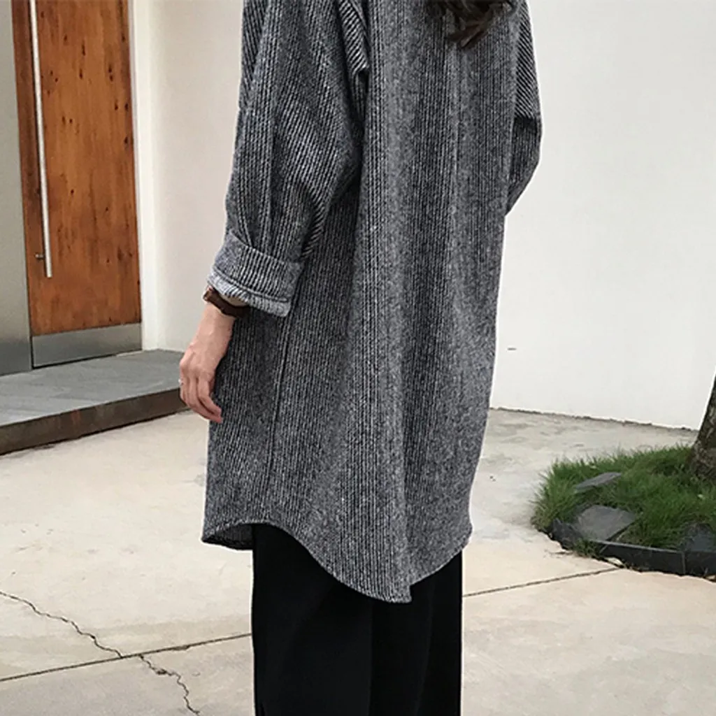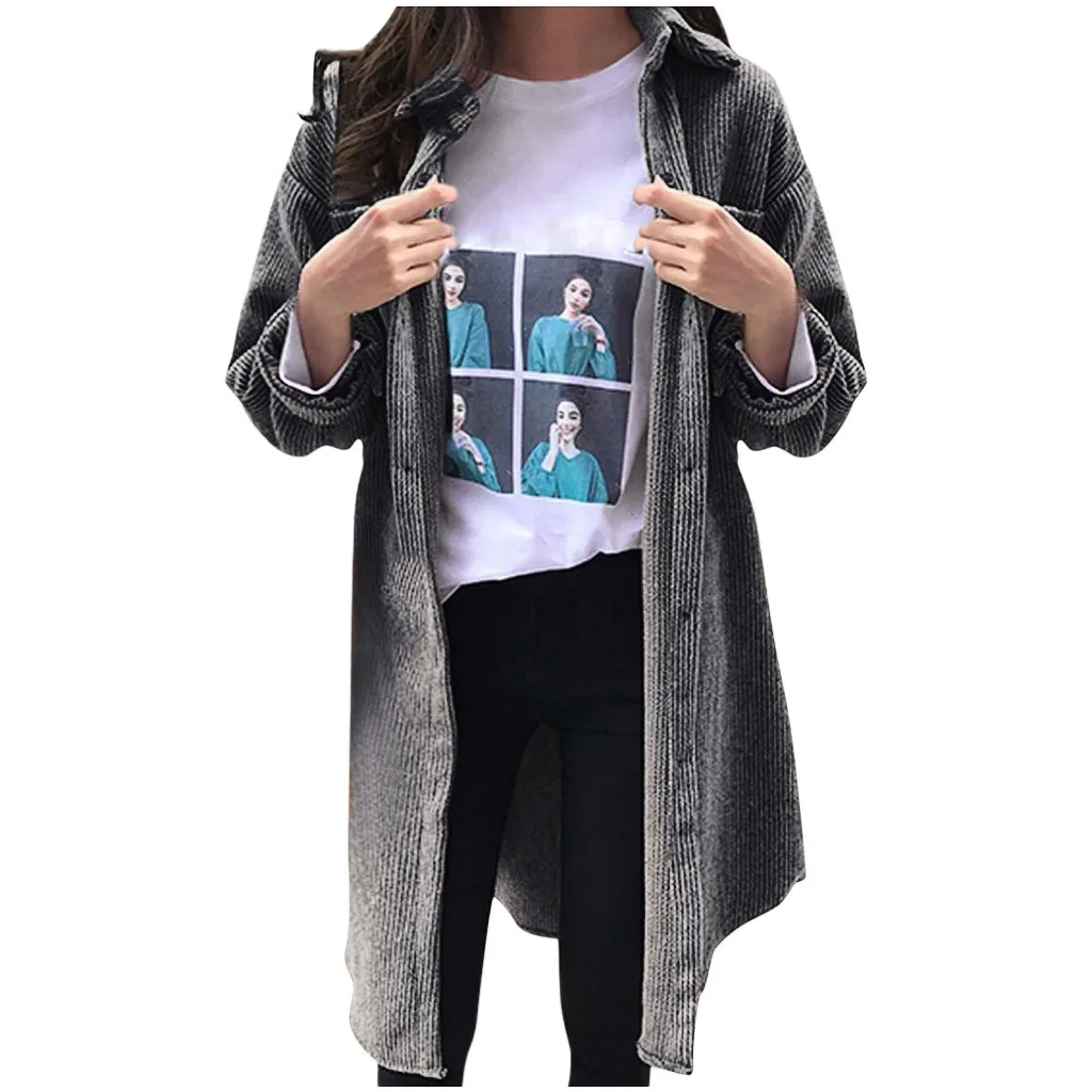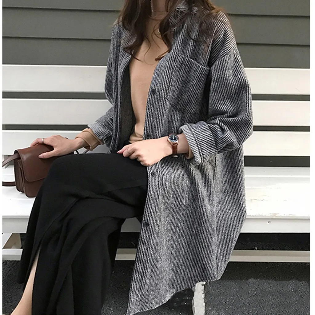 Длинная Вельветовая куртка в стиле Харадзюку, Женское пальто, большие милые Куртки, однотонная одежда, размера плюс #4, зима-осень