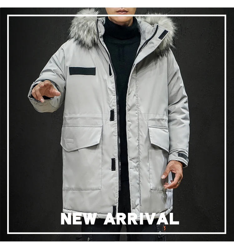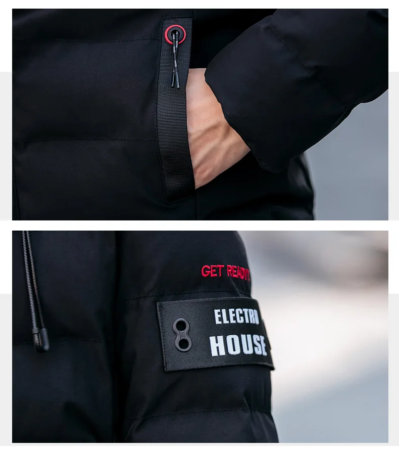 Уличная модная зимняя куртка, Мужская Толстая теплая парка с капюшоном, мужское зимнее пальто, повседневное облегающее студенческое мужское пальто, 6XL-7XL ABZ612