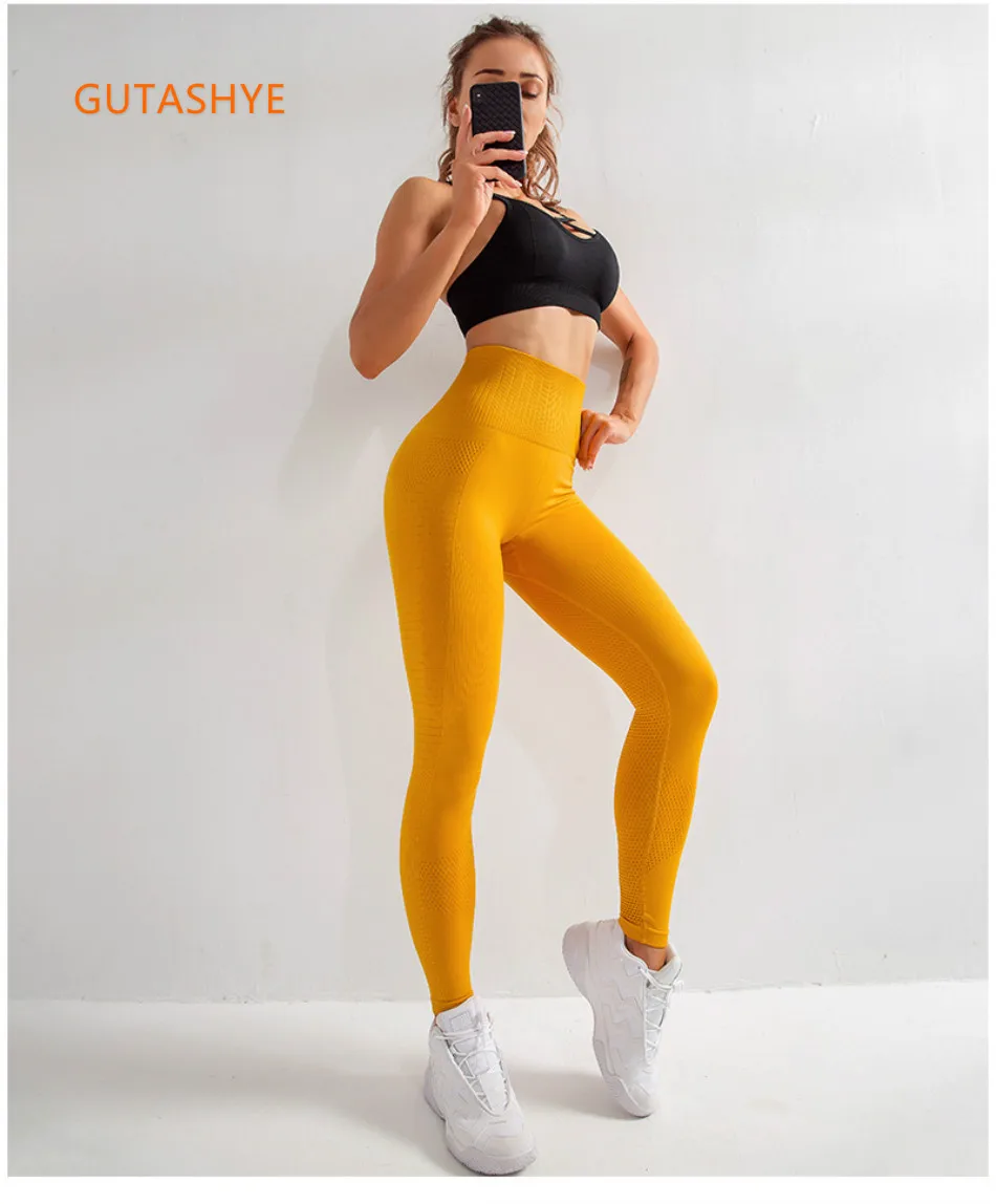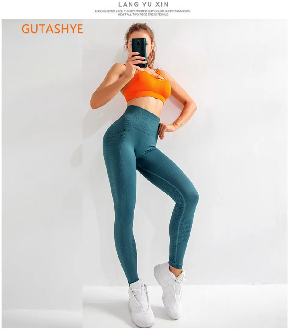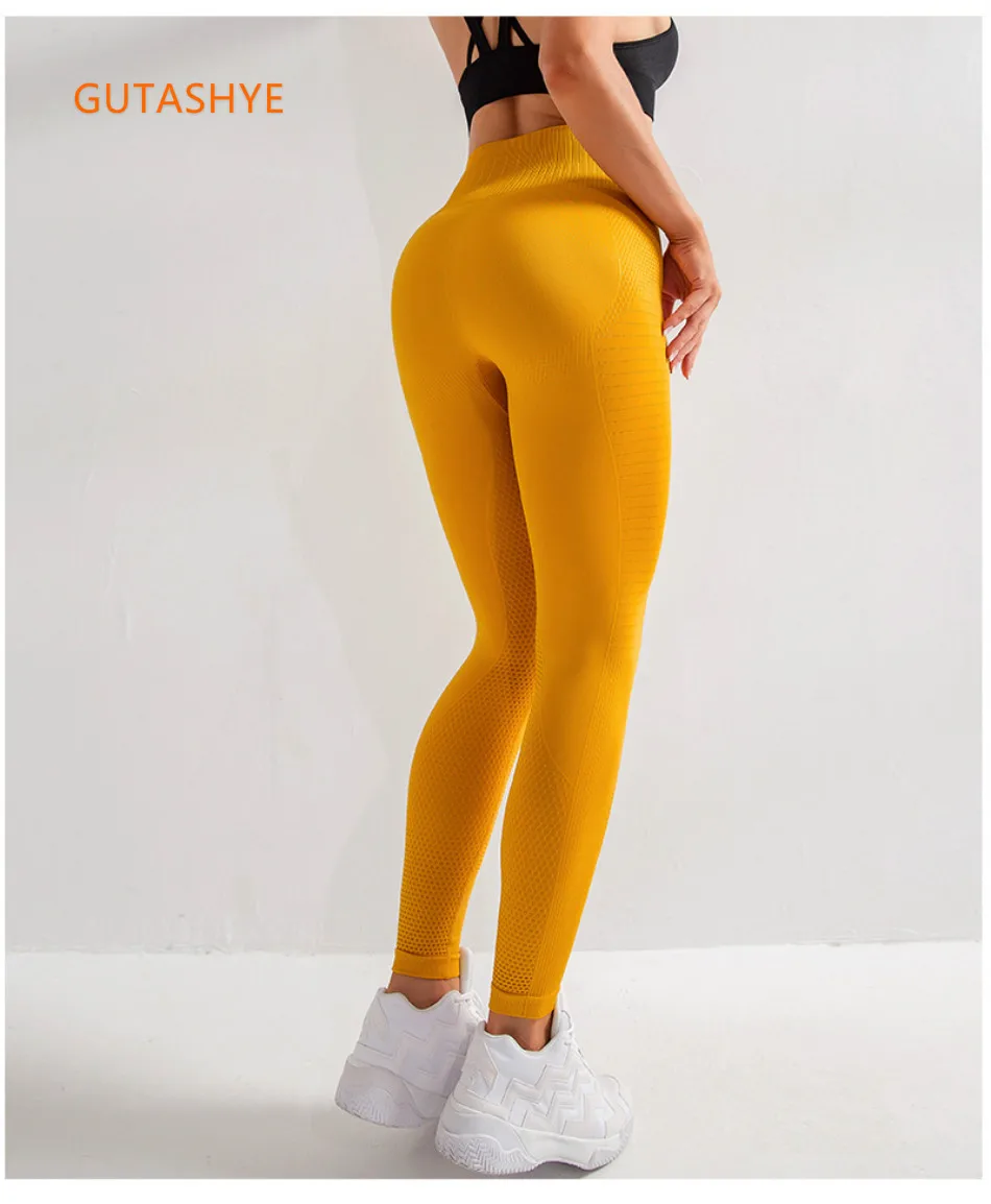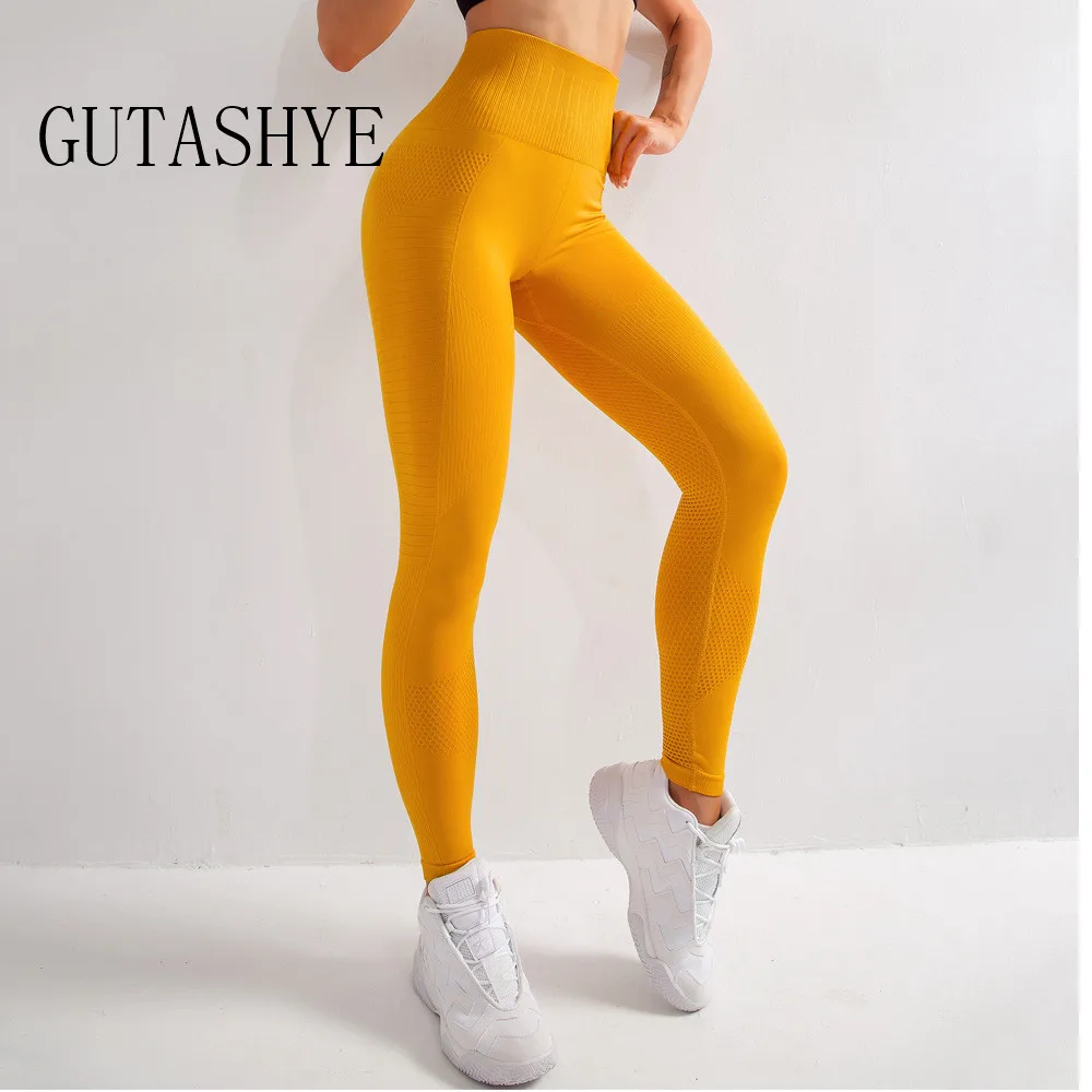 Бесшовные женские трико GUTASHYE, сетчатые дышащие тренировочные брюки для фитнеса, Женские Штаны Для Йоги