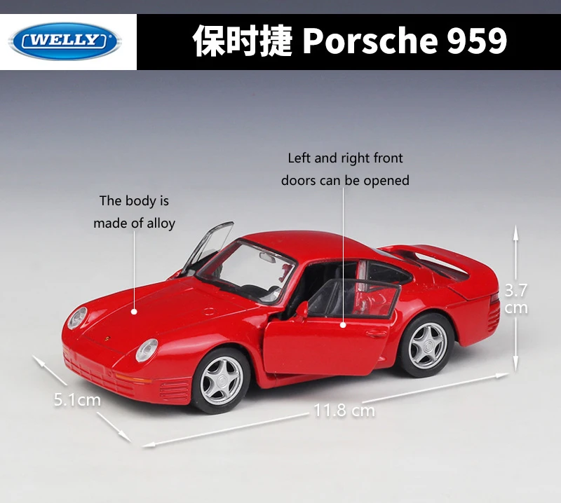WELLY литая модель автомобиля 1:36, классический автомобильный симулятор Porsche 959, модель автомобиля из металлического сплава, спортивный автомобиль, игрушечный автомобиль для детской коллекции