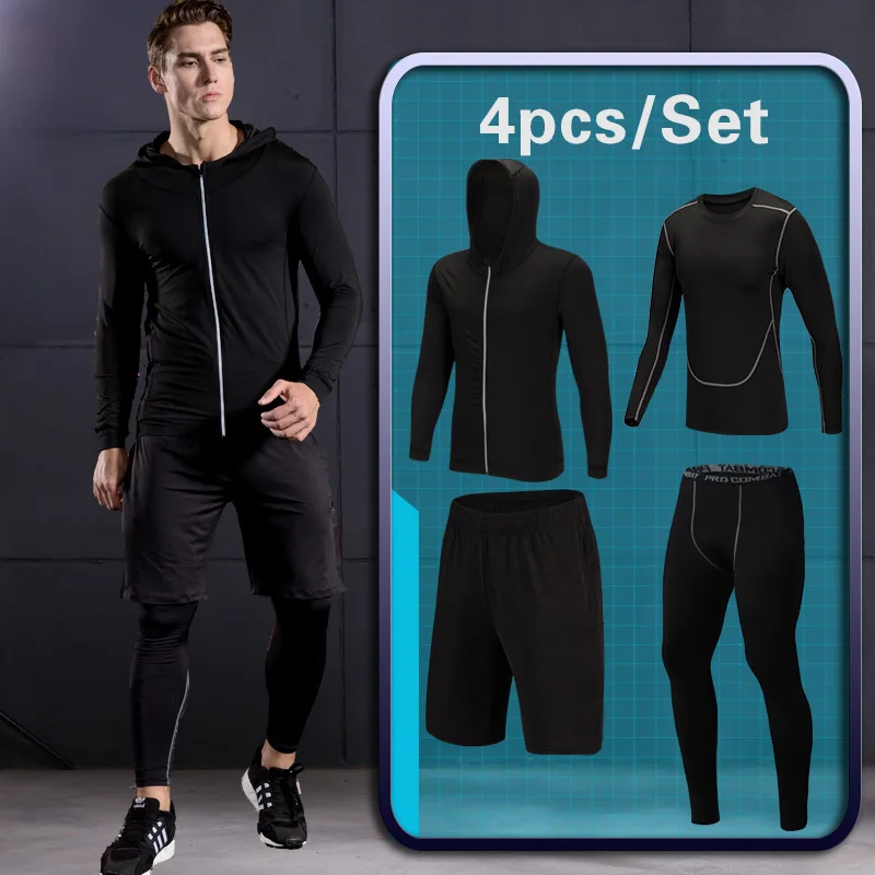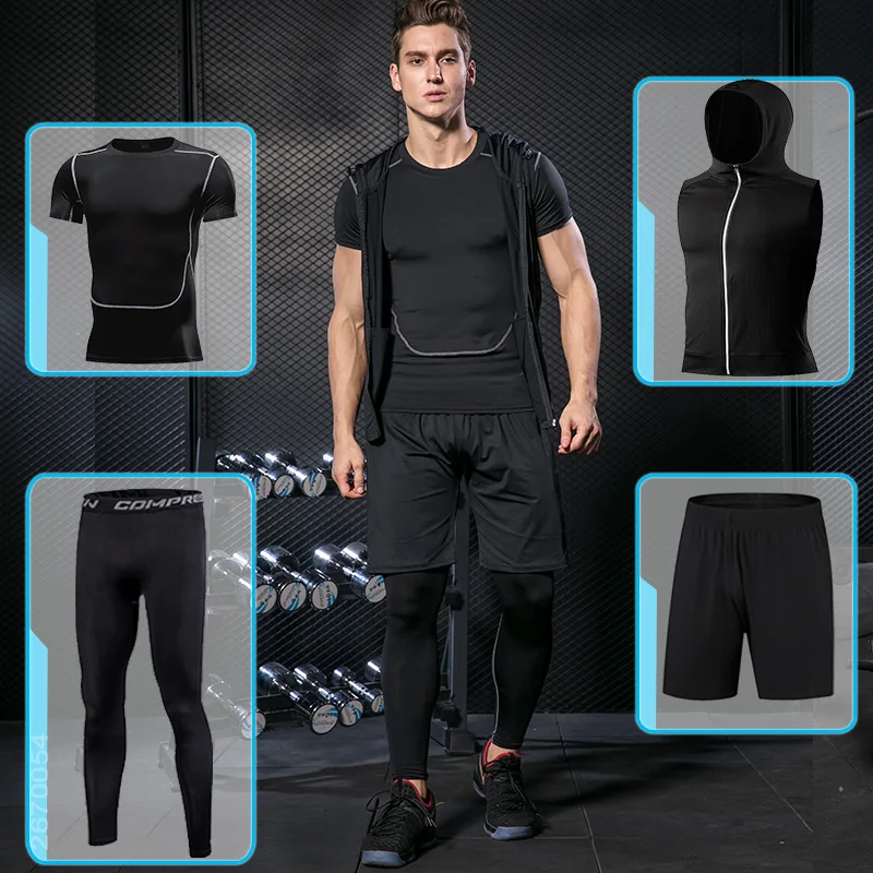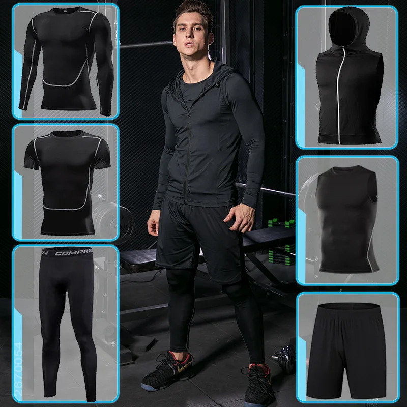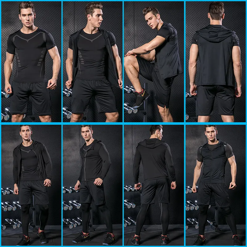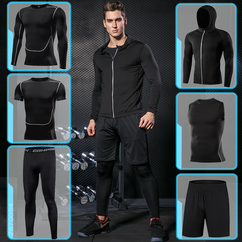 Спортивный комплект для бега Мужская облегающая спортивная одежда спортивный костюм для тренажерного зала и фитнеса уличный компрессионный спортивный костюм одежда черного цвета