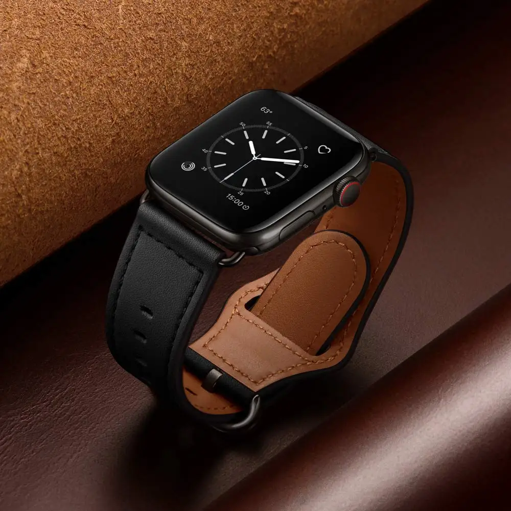 Ремешок кожаный для Apple watch band 44 мм 40 мм, браслет из натура...