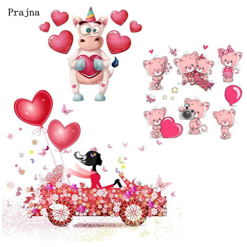 Стикеры с изображением единорога из мультфильма Prajna, железные наклейки на одежду, нашивки с сердечками и воздушными шарами в полоску, виниловые нашивки с аппликацией