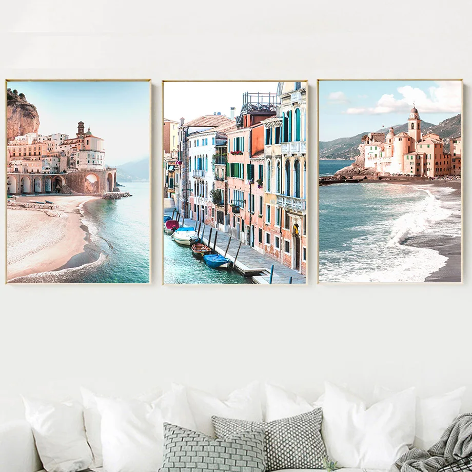 Постеры и картины в скандинавском стиле с рисунком побережья Амальф...