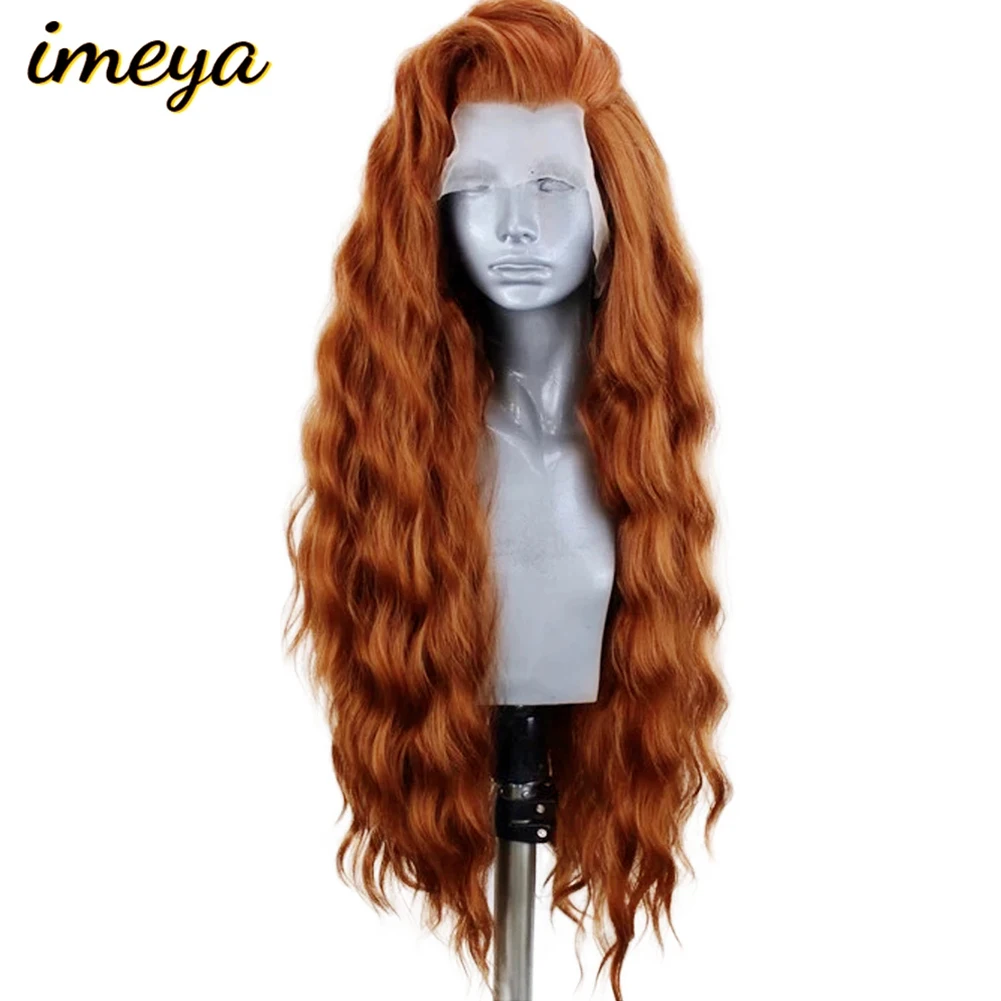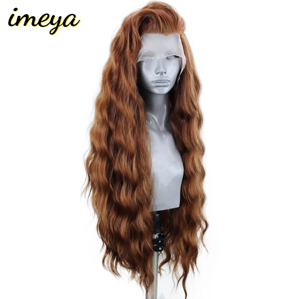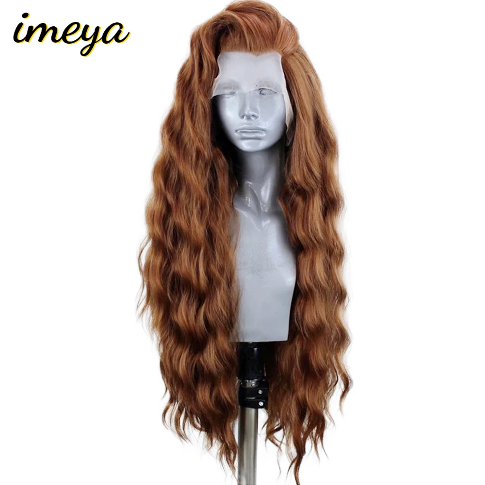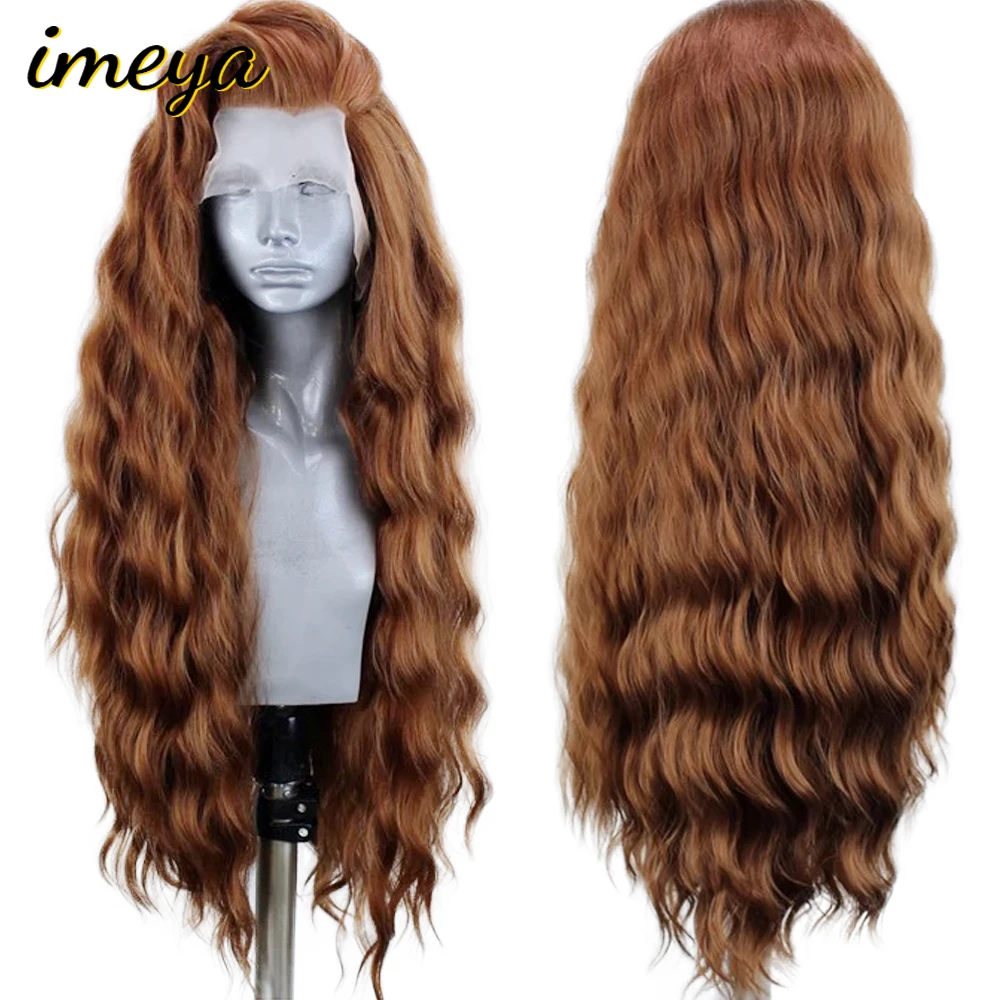 FANXITON длинные волнистые волосы, кружевные передние парики, 24 дюйма, коричневого цвета, синтетические волосы, высокотемпературное волокно, кружевной передний парик для женщин
