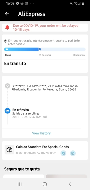 Страна: ES Доставка: Cainiao Standard For Special Goods 30.01.2022
