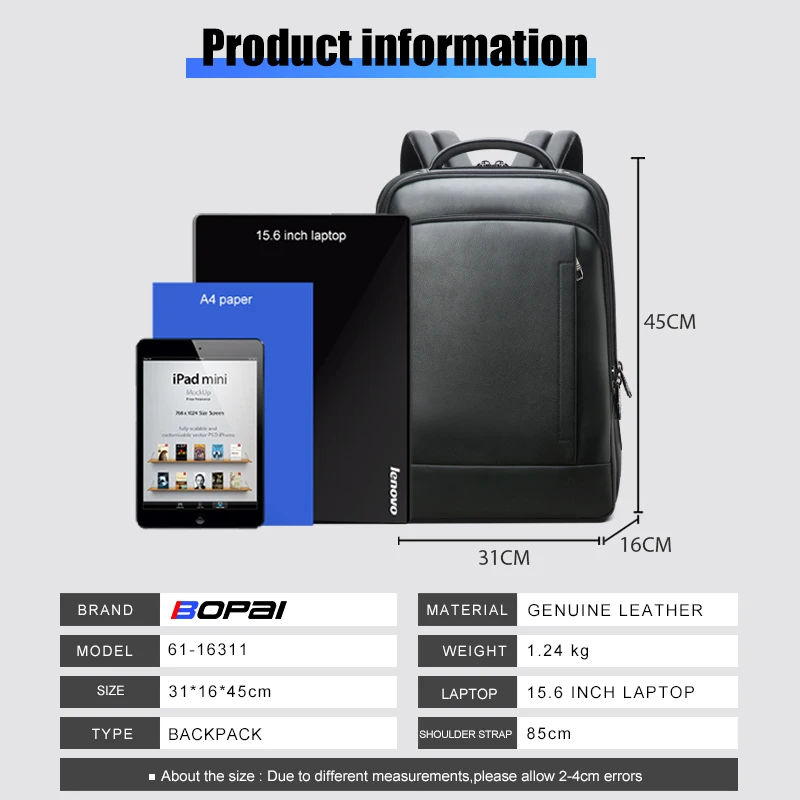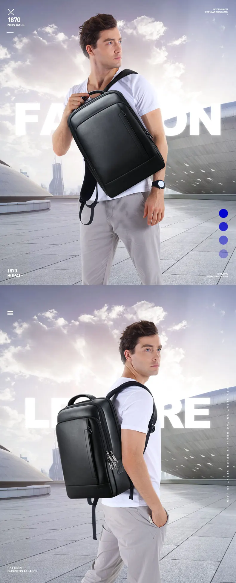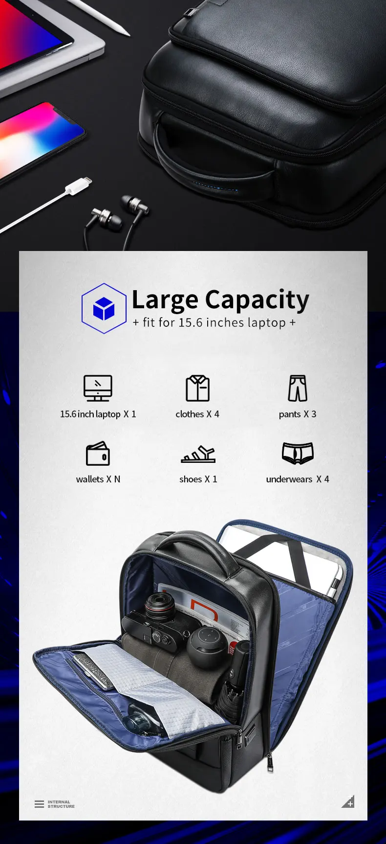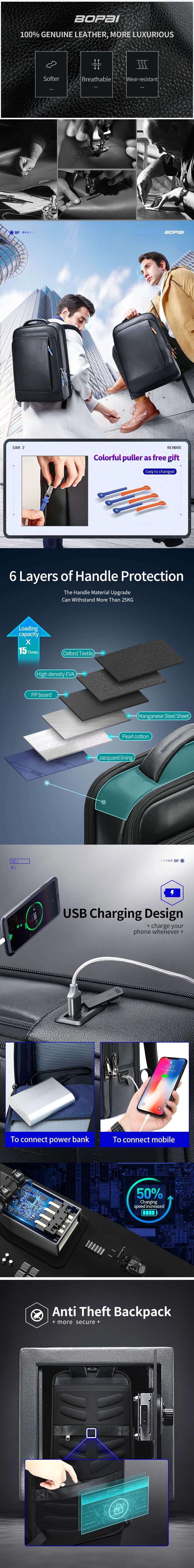 Рюкзак мужской BOPAI, из натуральной кожи, Деловой, Повседневный, водонепроницаемый, черный