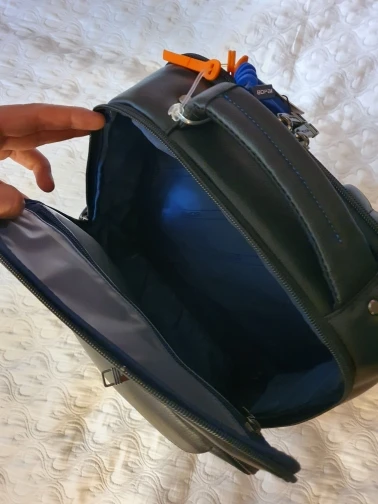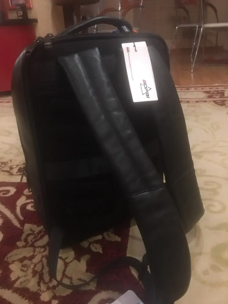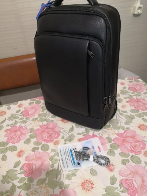 Хороший, добротный и удобный кожаный рюкзак. Практичные отделения, отличная фурнитура. Доставили за 8 дней. Мне не понравилось как выполнен элемент для подключения usb. Не отключается кабель, кармашек для кабеля неудобный. Сам элемент несъёмный. Он мешается в отделении. А отказаться от него нельзя.