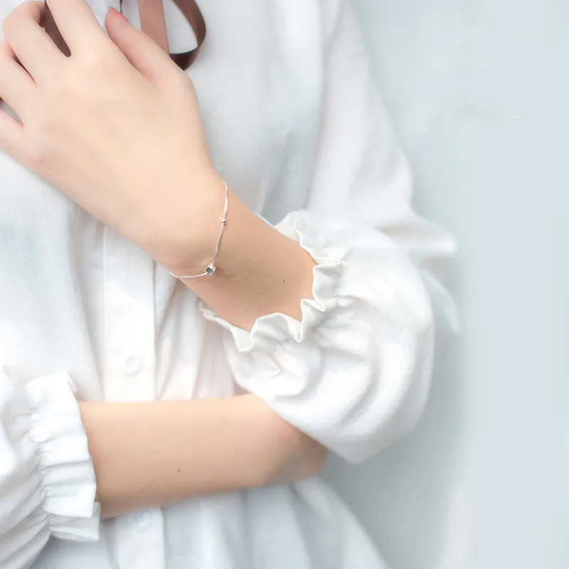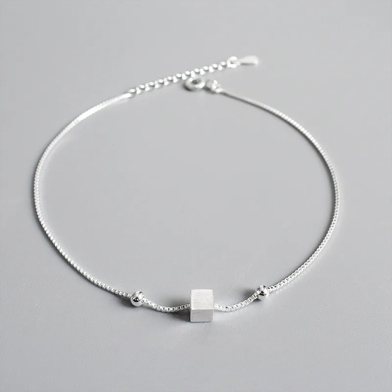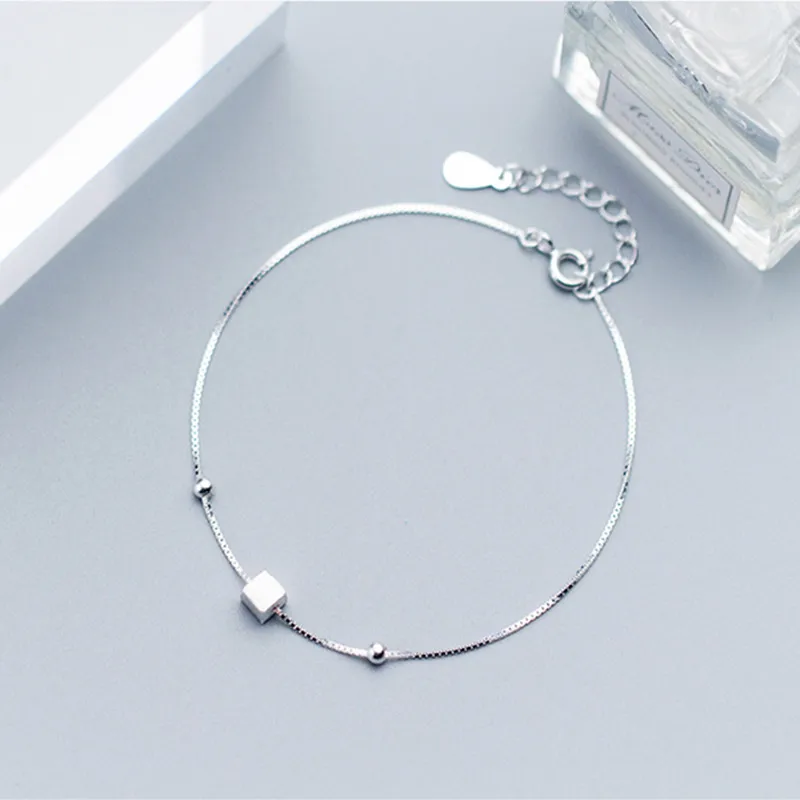 Подлинное серебро 925 пробы, Геометрическая квадратная коробка, браслет-цепочка, ювелирные украшения для женщин, вечерние, трендовые аксессуары, подарок CYS013