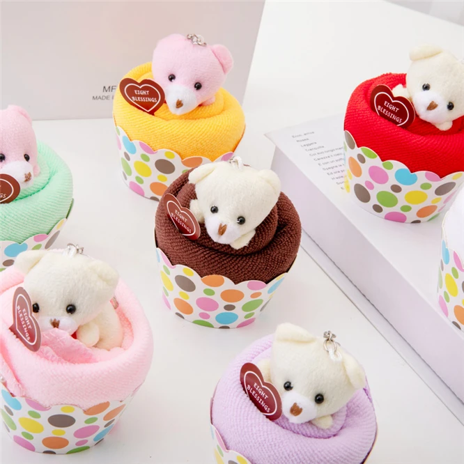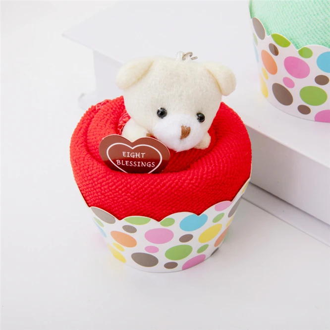 10 комплектов полотенце для лица в форме торта с милой игрушкой-медведем банное полотенце из натурального волокна Экологичное детское полотенце для рук свадебный подарок