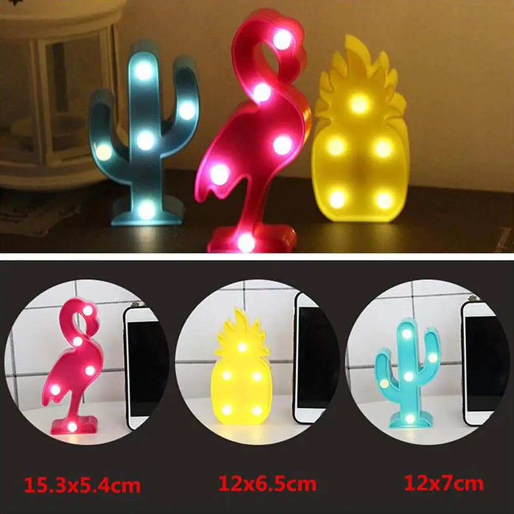 Светодиодный светильник в форме ананаса, фламинго, кактуса, ночник Технические характеристики: Проводка не требуется, быстрая и простая в установке. Хорошие подарки для детей и детей. Супер милый дизайн светодиодный Ночной светильник. Светодиодный светильник, низкое энергопотребление, длительный срок службы. Подходит для создания романтической, приятной и расслабляющей атмосферы. Название товара: светодиодный ночной Светильник Материал: Пластик Источник питания: 3 батарейки (в комплекте) Особенности: форма ананаса/Фламинго/кактуса, Рождественский Декор, мягкий светильник Фламинго Размеры: 13,5 см x 5,4 см/5,31 "x 2,13" (прибл.) Ананас Размеры: 12 м x 6,5 см/4,72 "x 2,56" (прибл.) Кактус Размеры: 12 см x 7 см/4,72 "x 2,76" (прибл.) Примечания: Благодаря светильник и экрана Цвет Товара может быть s светильник ly отличается из-за характеристик монитора компьютера. Возможны незначительные отклонения в размерах из-за различных измерений вручную. Посылка включает в себя: 1 x светодиодный ночной Светильник