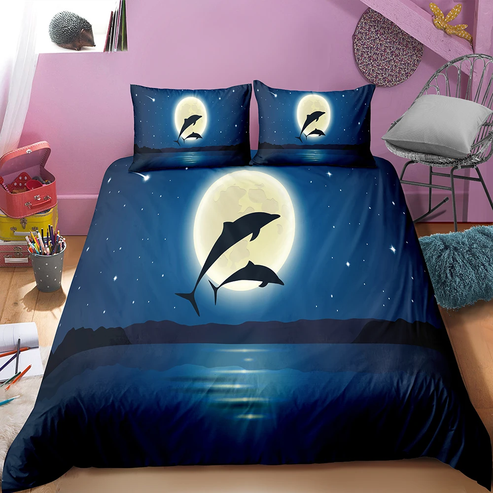 Комплект постельного белья Fanaijia King-Size, роскошный пододеяльник с принтом дельфина и наволочка