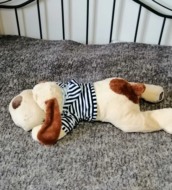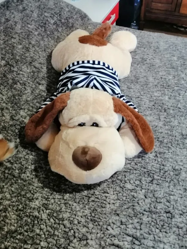 классная собака.соответствует описанию.сделана качественно.без химического запаха.очень доволен покупкой.рекомендую продавца для приятных хороших покупок