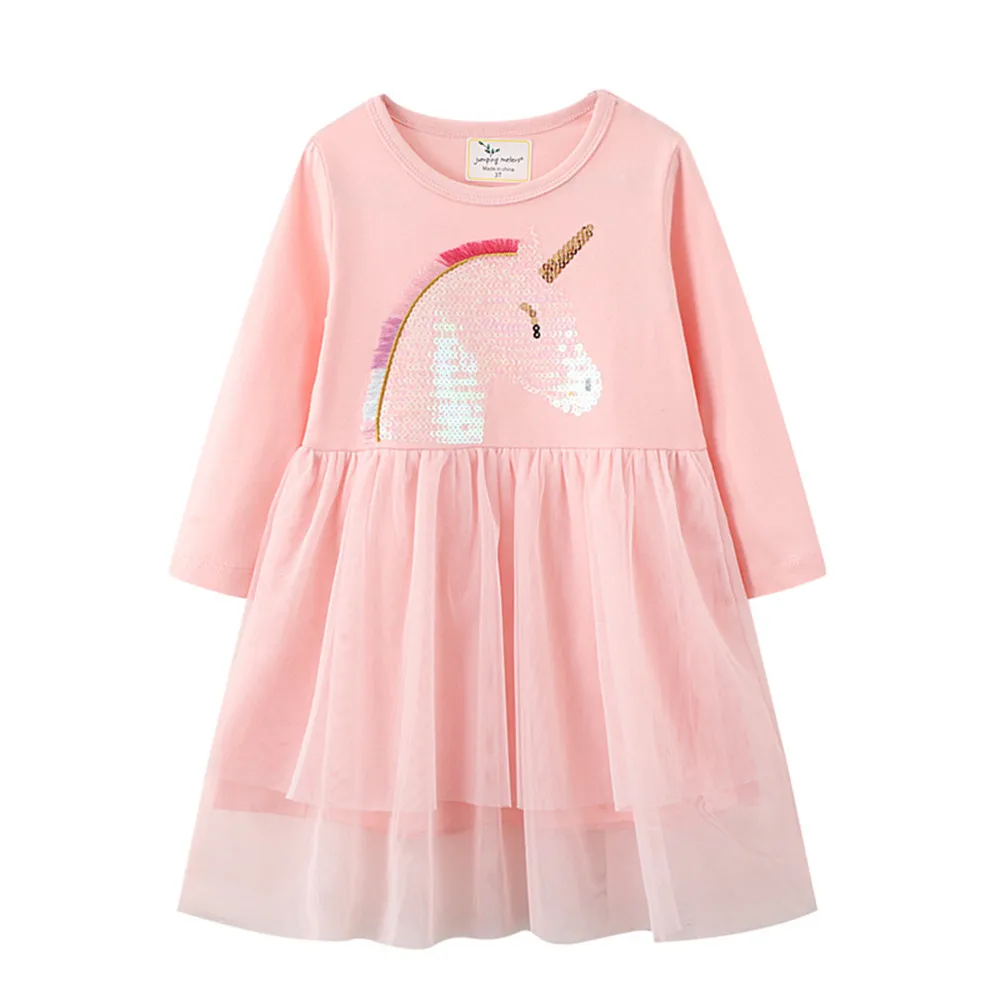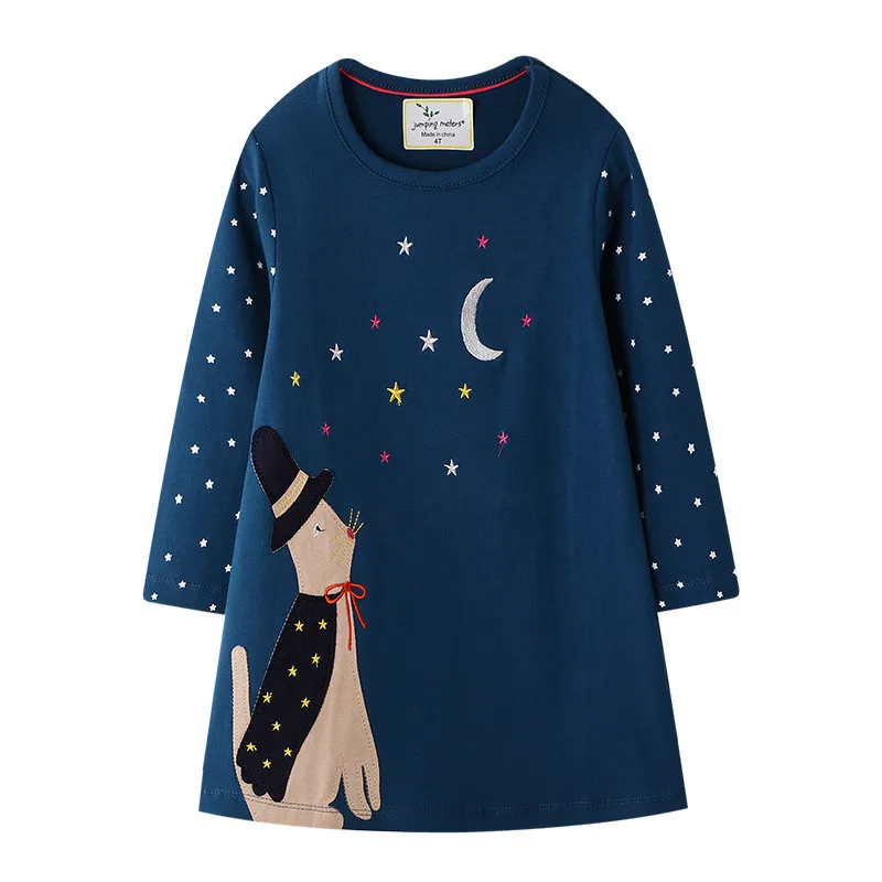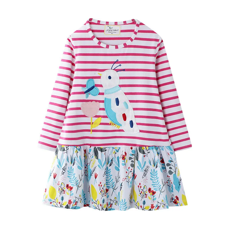 Платья с аппликацией прыжков и животных, хлопковая одежда для девочек, платье с длинным рукавом для осени и весны, школьные детские платья принцессы