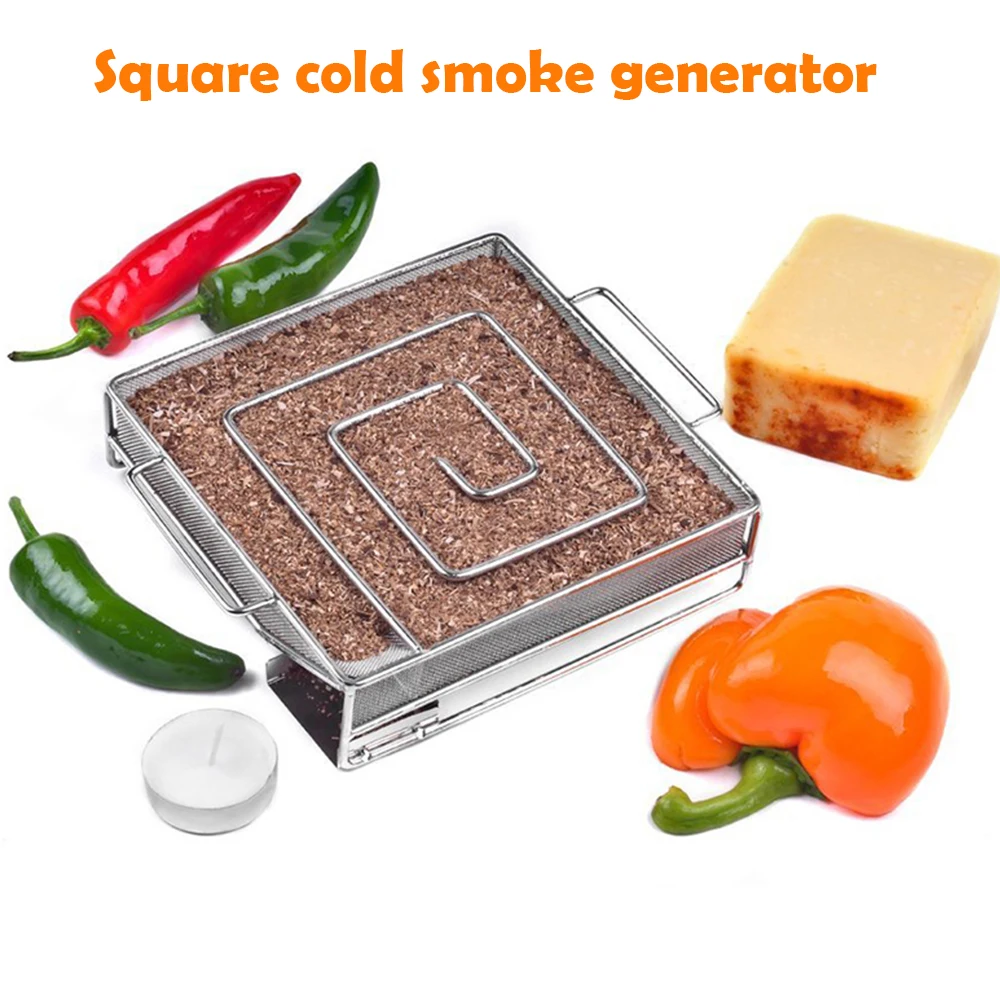 дымогенератор для холдного копчения, Генератор холодного дыма для мяса, принадлежности для барбекю, коптильня для копчения рыбы и мяса, коптильня, лосось, бекон, рыба, Мини яблоко, деревянный чип, курительная коробка