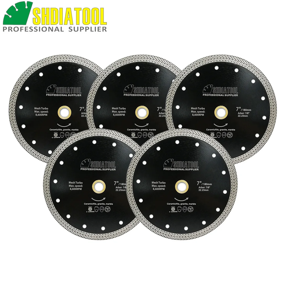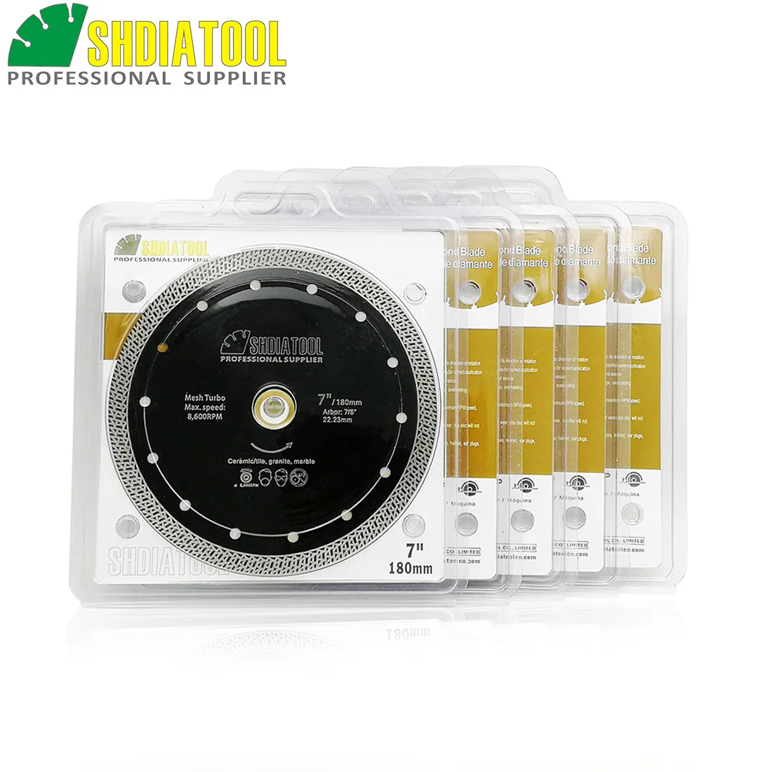 SHDIATOOL 5 шт. диаметром 180 мм7 дюймов горячепрессованный спеченный алмазный режущий диск Сетка турбо алмазный пильный диск гранит мрамор плитка керамика