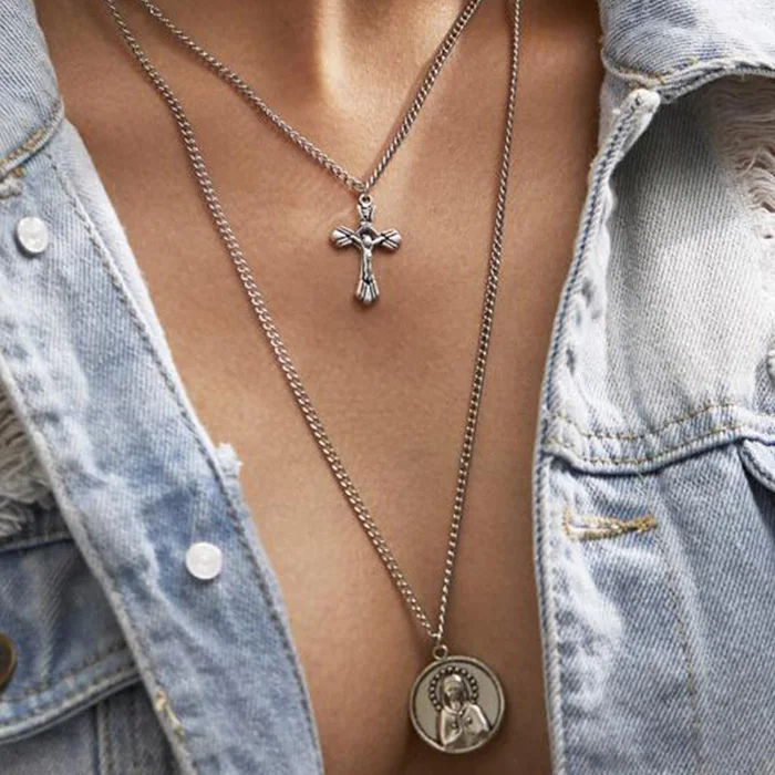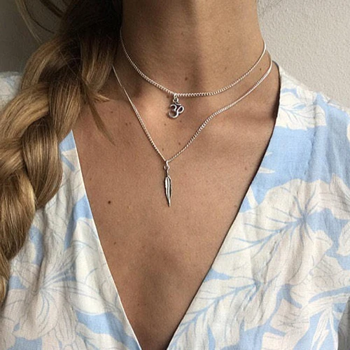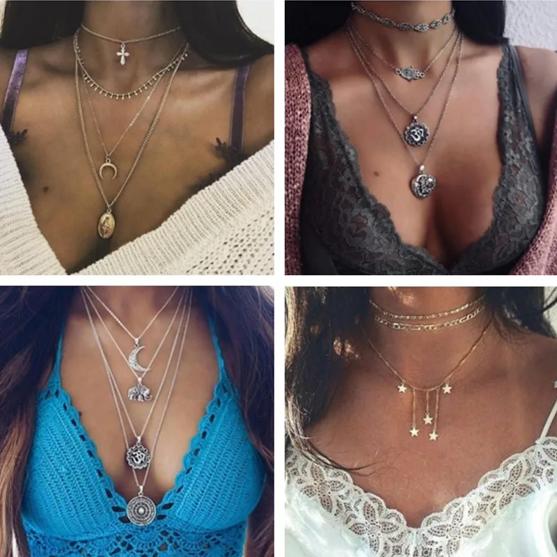 Цепочка Seblasy Женская многослойная длиной до ключицы, с изображен...