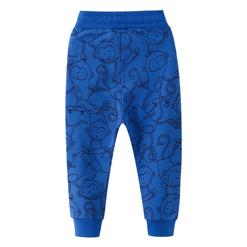 Jumping metersдлинные штаны с изображением животных для маленьких мальчиков и девочек; Осенние спортивные штаны; Детские брюки с принтом обезьяны на завязках; Длинные штаны