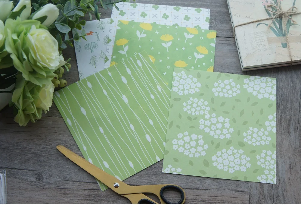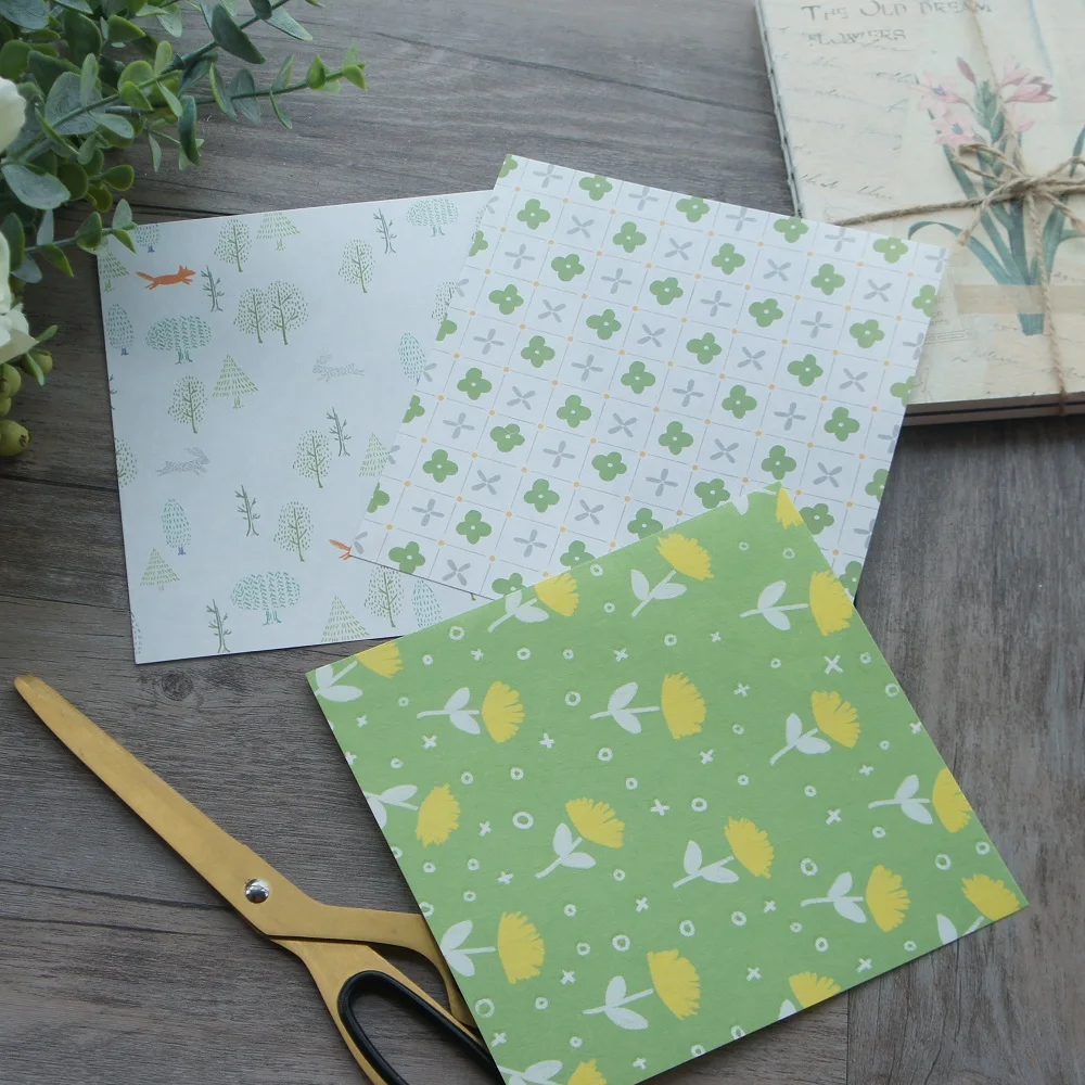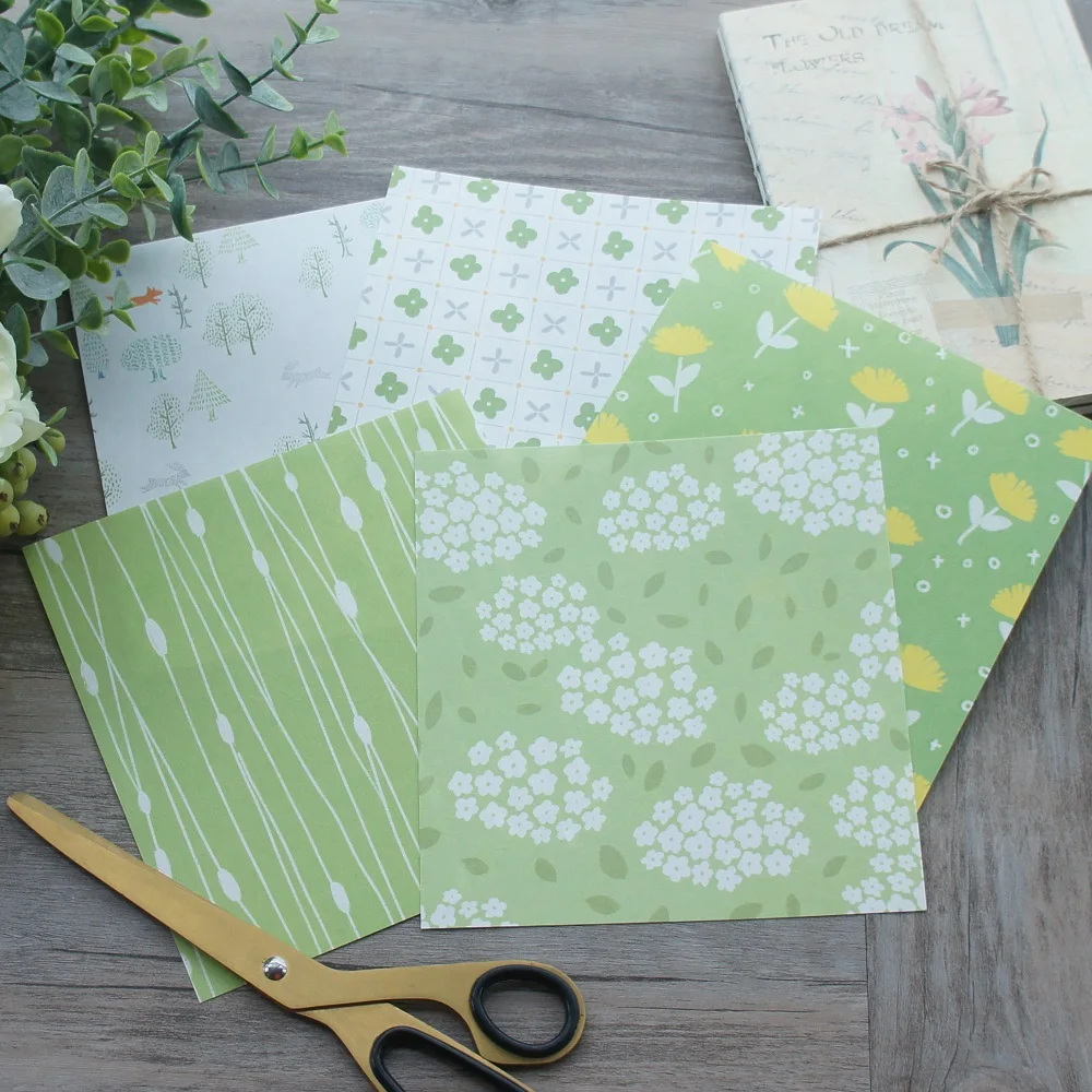 15 листов для творчества, 5 стилей, 15,2*16,2 см, с изображением весенней зеленой лужайки, Крафтовая бумага для скрапбукинга, креативная бумага для подарка